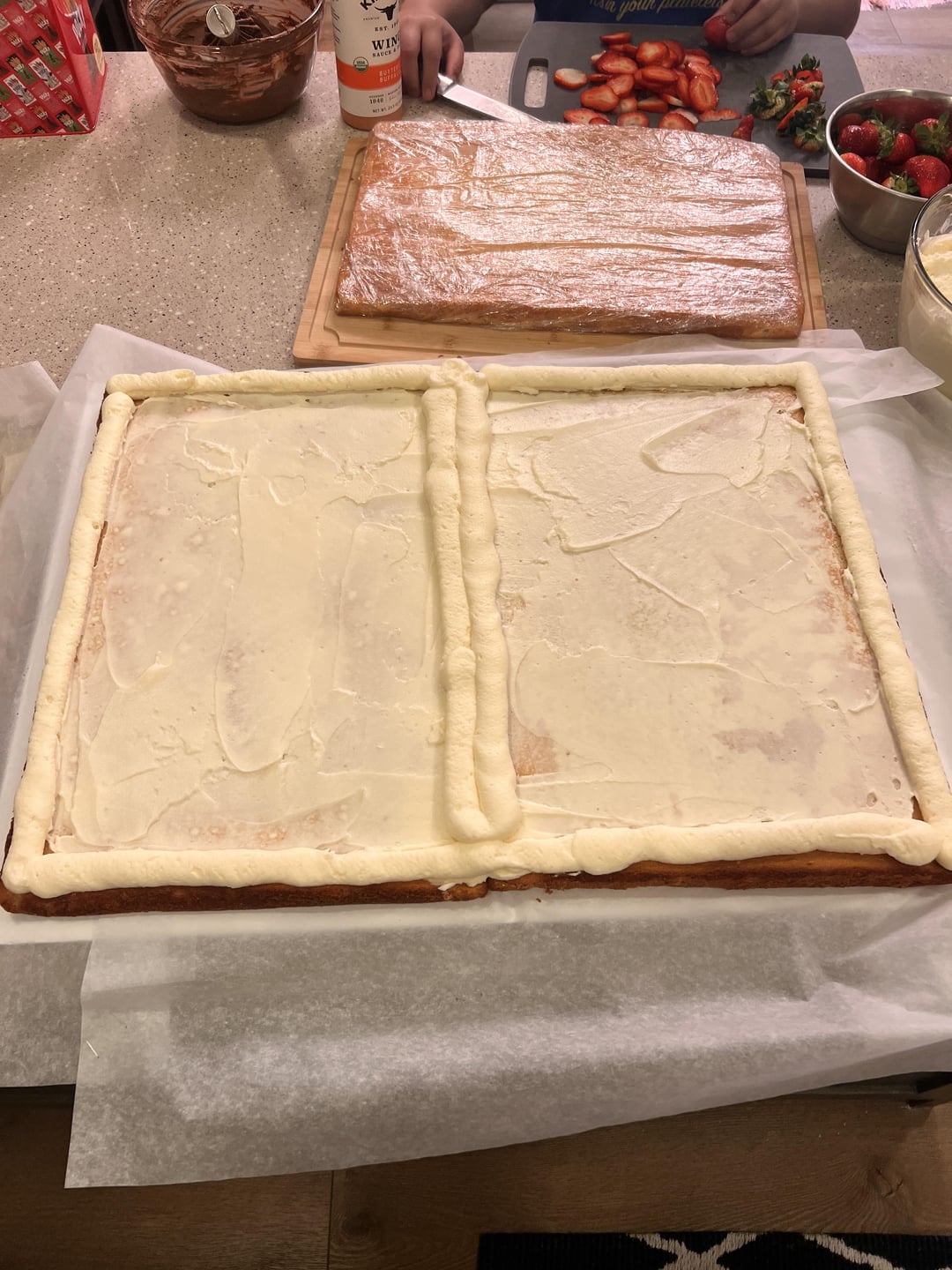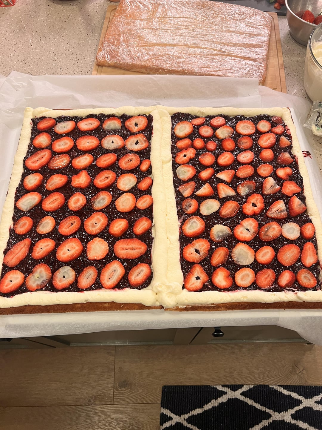 Made berry compote, added some strawberries and the marscapone/cream cheese frosting filling/coating