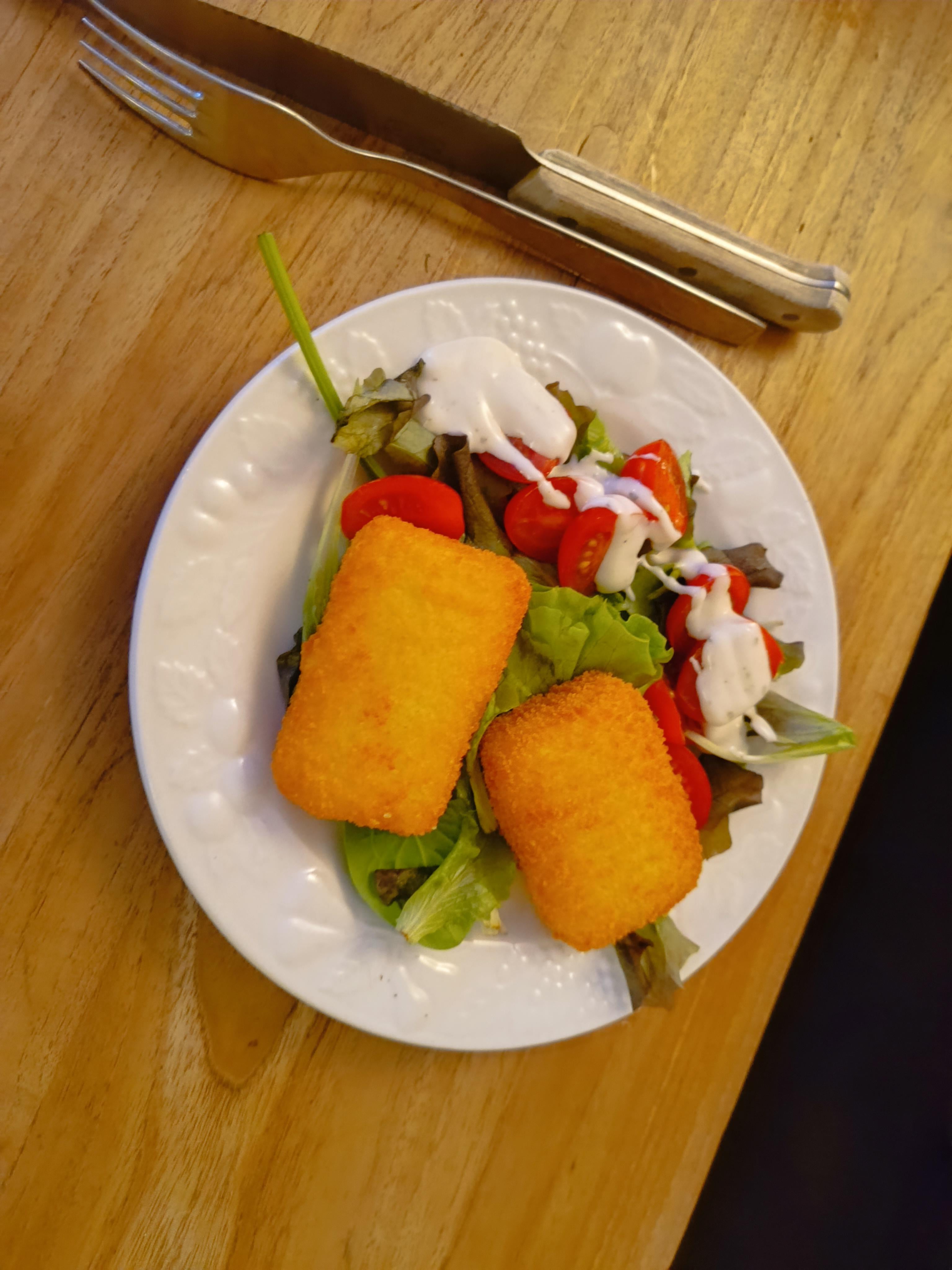 It was parmegiano croquette with a side salad.In appetizers we had a collection of cheeses and for the main course it will be a Swiss cheese fondueHail hail cheeseby frettbe Write A CommentYou must be logged in to post a comment.