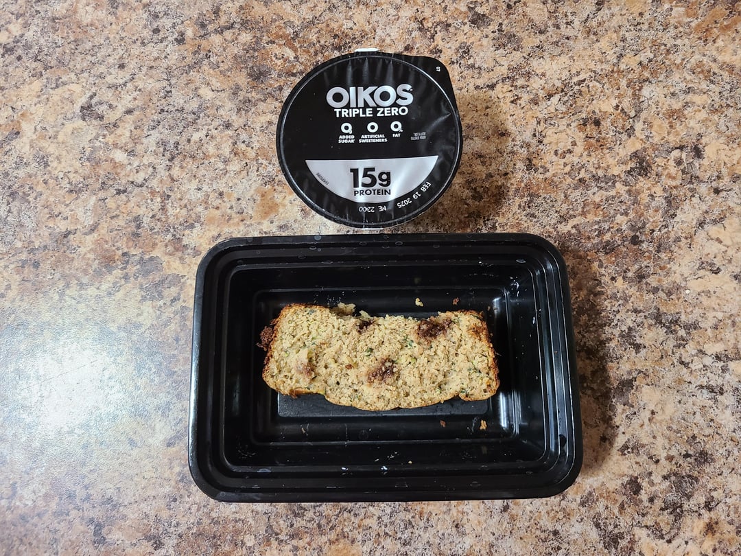 Afternoon Snacks: my homemade protein zucchini bread and a yogurt cup.