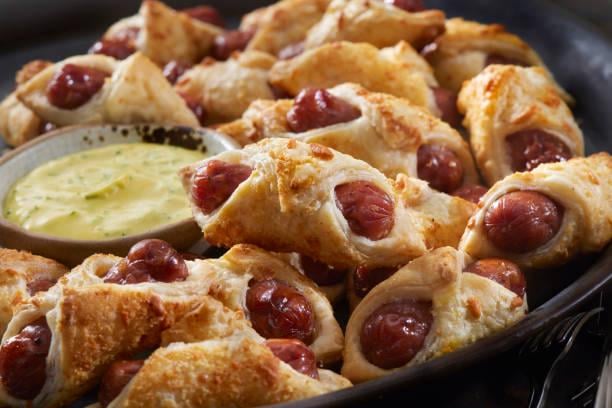 * 1 package (8 oz) refrigerated crescent roll dough or puff pastry * 1 package (12-16) cocktail sausages or hot dogs (cut into thirds) * 1 large egg (for egg wash) * 1 tablespoon water
