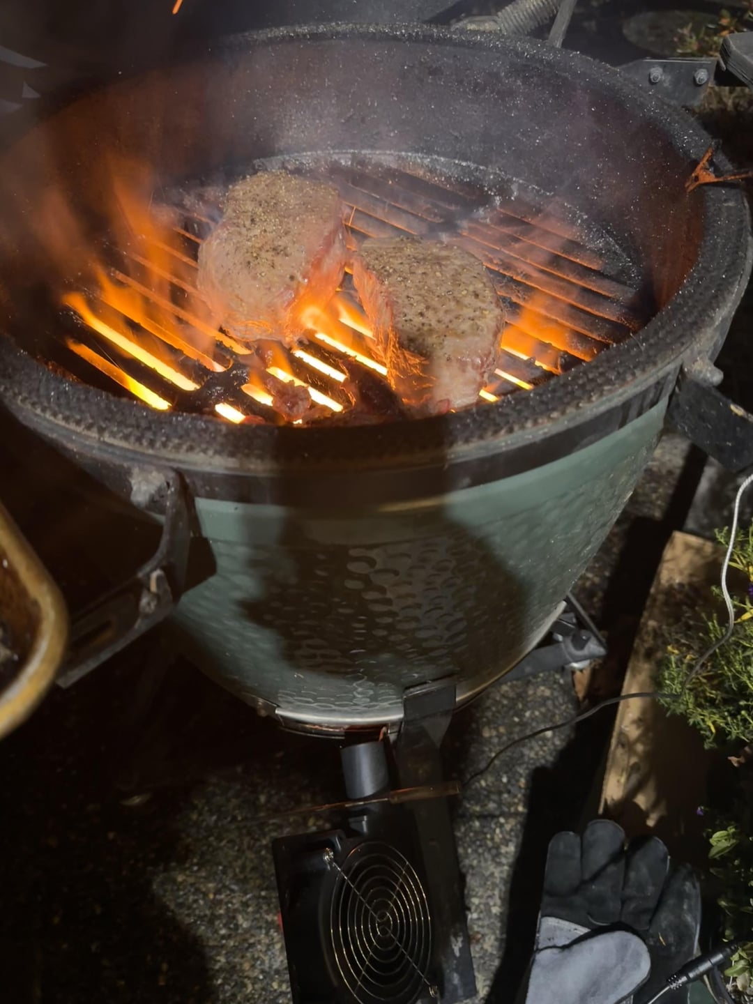 Love my Smobot but I’m impatient when starting or going for a flame for a reverse sear. Have used a small travel hair dryer to shorten the time to get to temp. I know others have used leaf blowers. So I decided to grab a variable computer fan mounted to some aluminum stock and clamp it into place during my cooks. Works great. Shortens my start times and when I’m going from 250 to Sear mode, it’s a matter of seconds to flame it up. Enjoy.