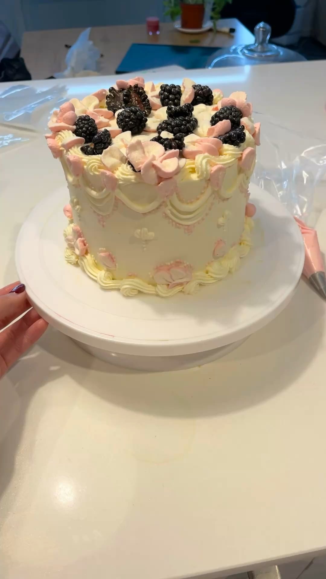I definitely need to practice drop lines! But anyway it’s a blackberry and mango chiffon cake w/ fresh cream! ☺️ Couldn’t get a pick of the inside bc I got distracted serving it haha. by Naive_Duck7169 11 Comments dancinggtherapist 1 year ago Gorgeous 😍looks tasty too!!! 😋 SmellsPrettyGood2Me 1 year ago She’s quite lovely GingerinWV 1 year ago Beautiful! Bar4185 1 year ago Very beautiful. BenGay29 1 year ago Lovely! ThornyRascal 1 year ago This is stunning Exact-Sorbet-2292 1 year ago Its no longer your families, ITS MINE HAHAHA. jokes aside its beautiful. Bboy818 1 year ago Delicious!! lanafromla 1 year ago wow is the frosting whipped cream? how no air bubbles 😩 burtonboy1234 1 year ago and so you should be Only-Row-3399 1 year ago Blackberry …. chiffon … mango …. fresh cream ! This is perfect 🥲Write A CommentYou must be logged in to post a comment.