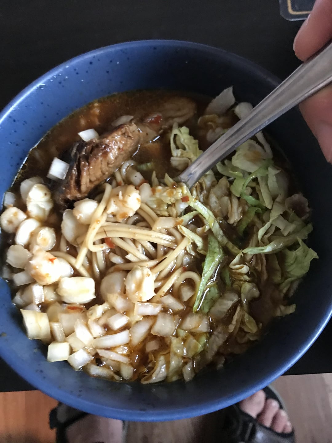I’m on-call for work through Friday so I decided to experiment a bit and made tonkotzole rojo: a tonkotsu ramen-pozole hybrid. I used tonkotsu broth, my grandma’s chile rojo sauce, pork belly braised with chile rojo, and a mix of ramen and maíz pozolero. 10/10 would try again