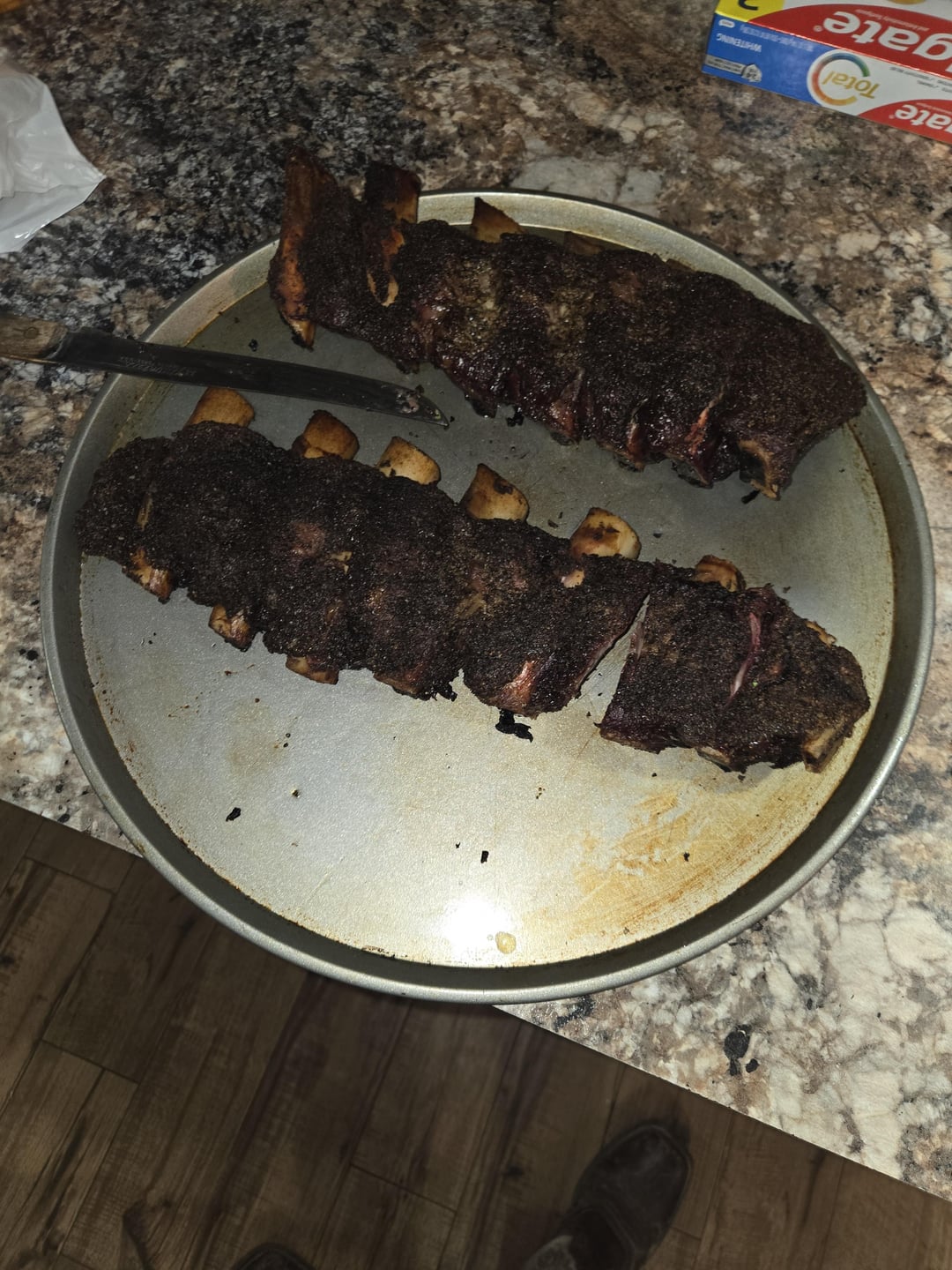 Spread your rub a little thinner and more evenly, you’re missing the sides and edges..