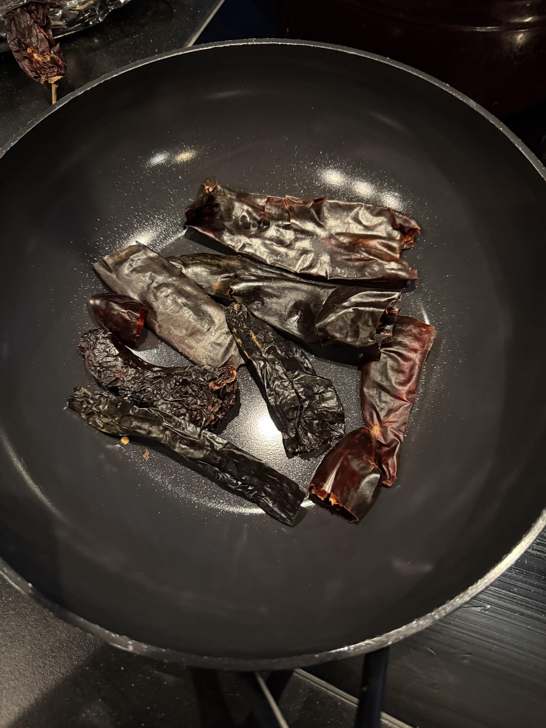 – a few other leftover peppers: 2 cascabel, half pasilla, half ancho