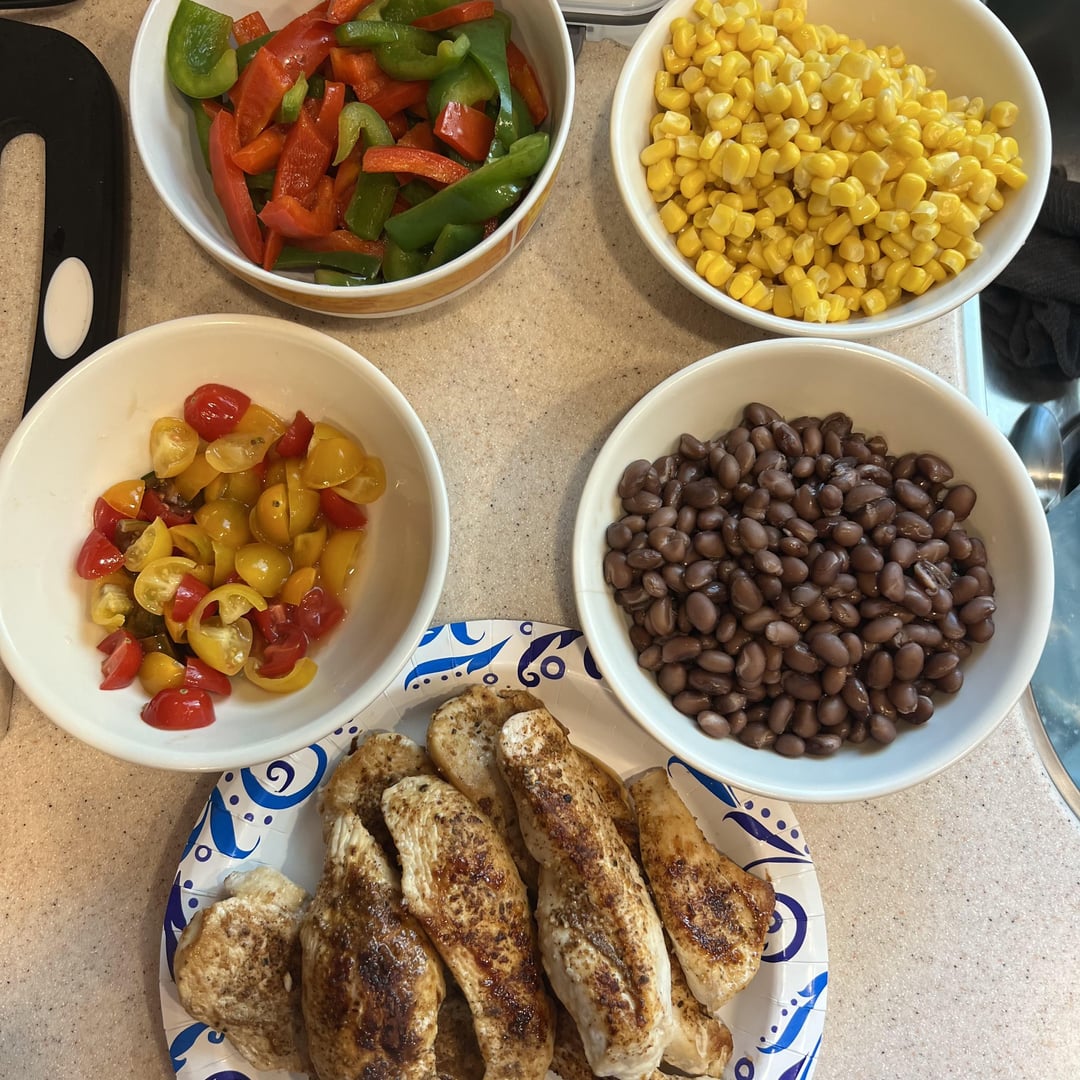 Ingredients are shown in the 4th photo + 2lbs of chicken breast (seasoned w/ fajita seasoning)