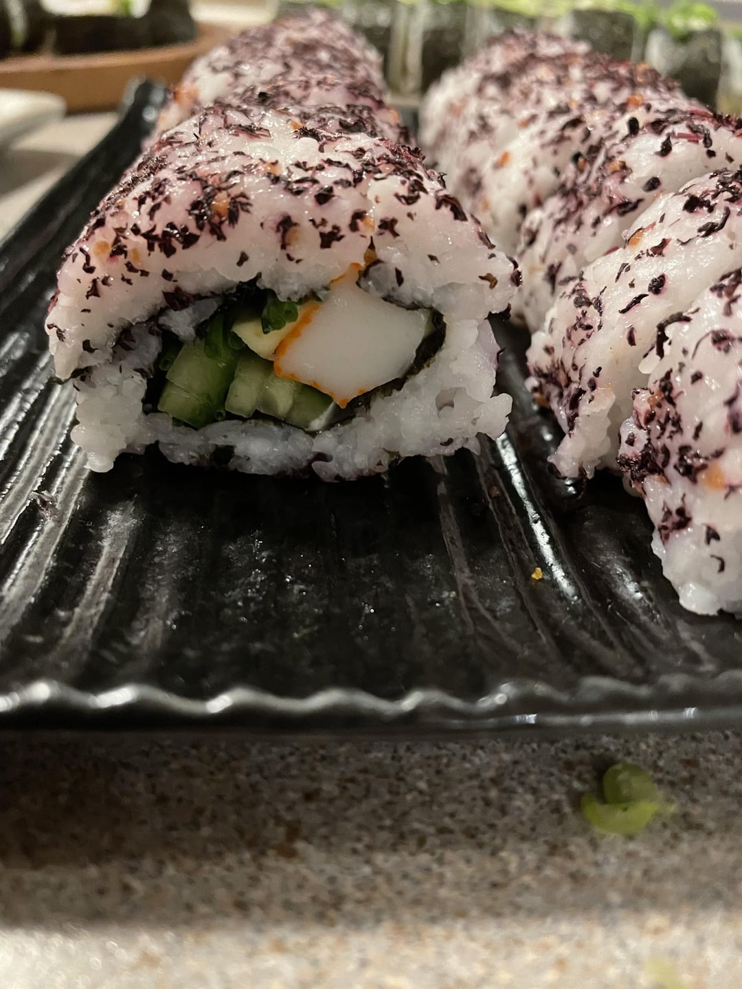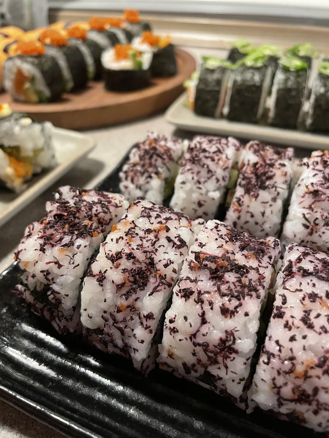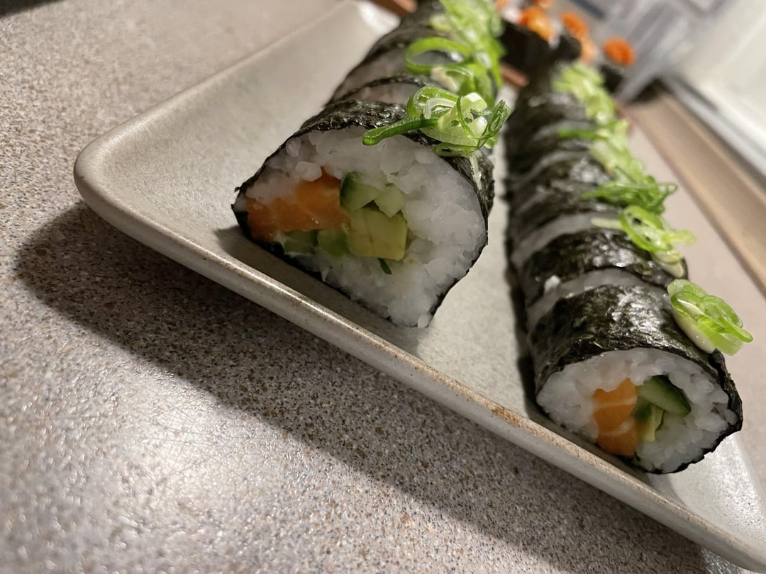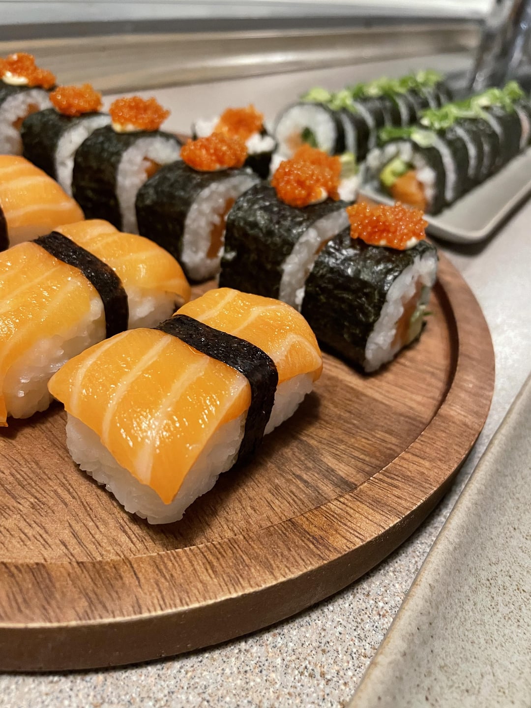 2. Try cutting your Maki roll in half and then lining them up being one other, then proceed to cut the pieces, that way it’s easier to get even piece size,