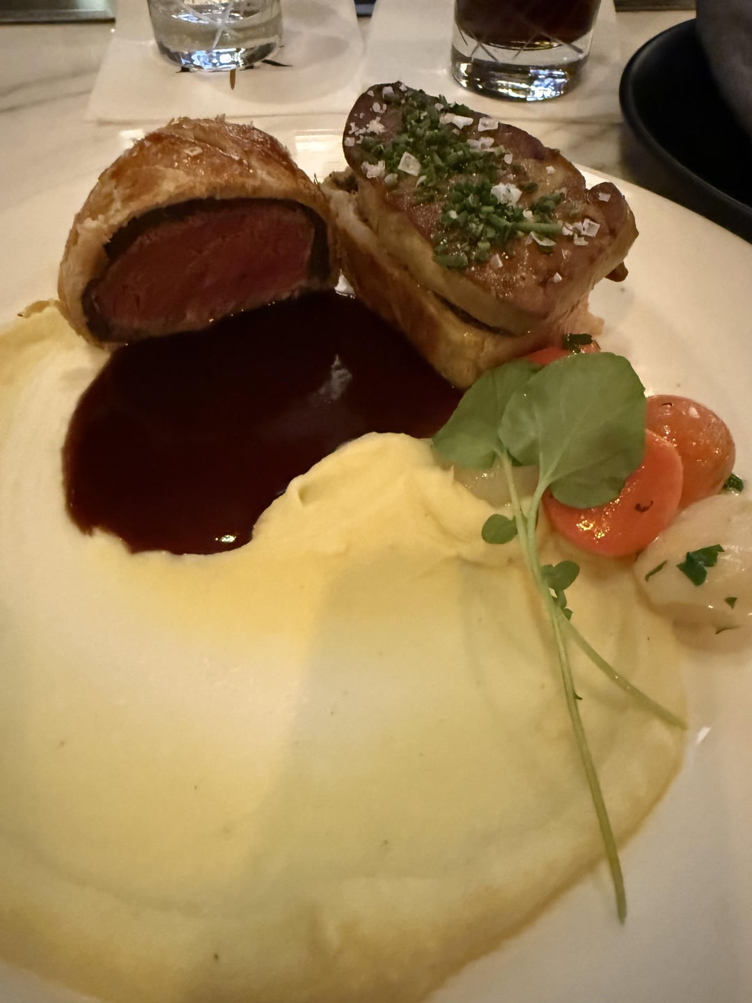 Best scallop dish I’ve ever had. The signature beef wellington with a foie gras addition. I’ve had better sticky toffee puddings, opinions online say that it’s amazing.