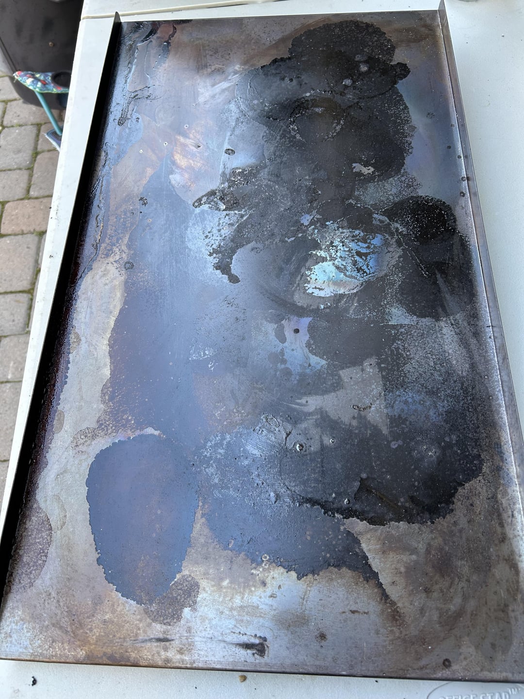 The first image looks like my drip tray when I take the foil off to replace it. The others look normal for startup, but it shouldn’t produce smoke like that all the time.
