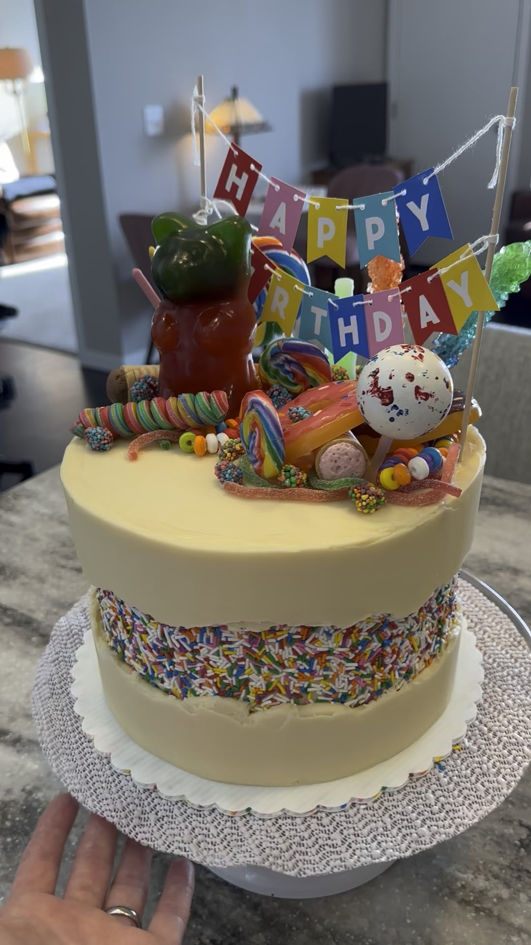 The buttercream isn’t as smooth as I would like (ever), but I had a blast putting this one together for my friend! I think I’m hooked on the fault line aesthetic. Funfetti cake from Sugar Spun Run and American buttercream from Preppy Kitchen. 🥳