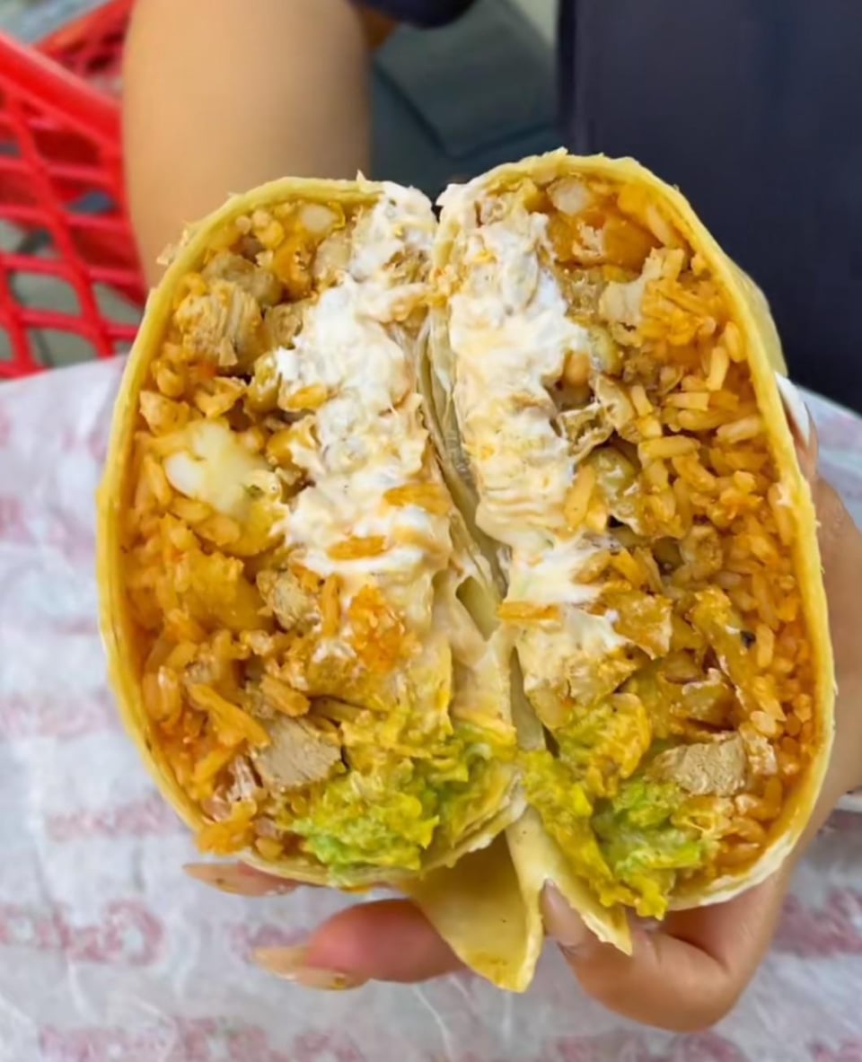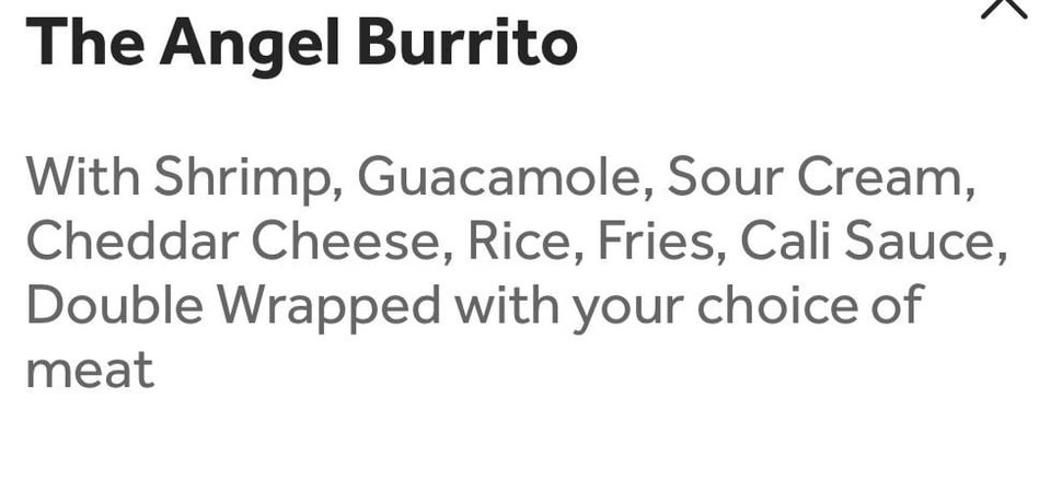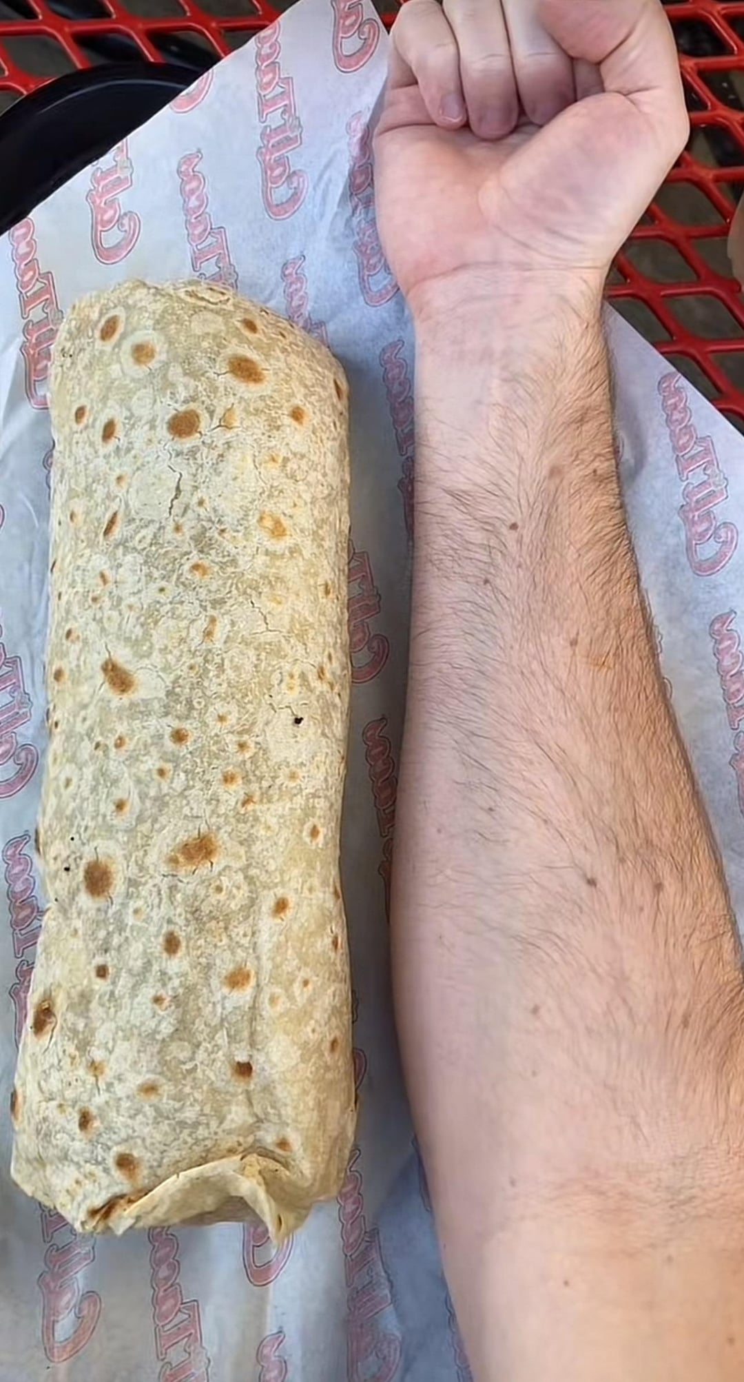These are the best possible pictures I could find. It’s from Cali Tacos in Orange, CA. Last time I had it it’s the length of my forearm and i’m a 6’2 male (if that matters idk) but lmk bc I’ve always wondered 😭