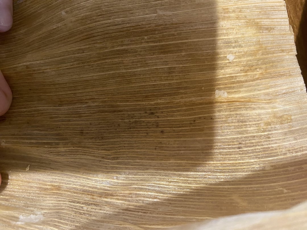 My in laws sent us home with enough tamales to feed a small town, they were made today/yesterday! The husk on the first one I opened has little black spots in the middle, and near the bottom. Is it mold? They’re delicious but I’m immunocompromised so I can’t risk it ( even though I ate it already 😂 they’re just too good) I opened a sweet one and it was fine, but just curious if it’s actually mold. I figured if the husks weren’t dried all the way then stacked and stored it could happen, because the filling was fresh. Photos attached.