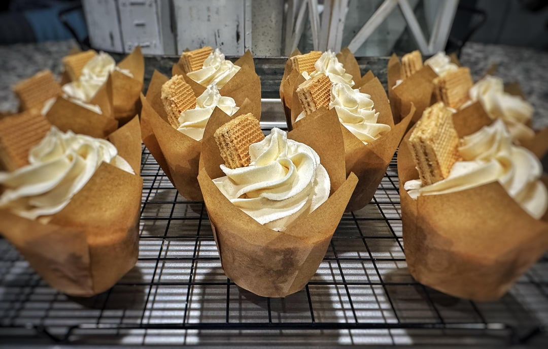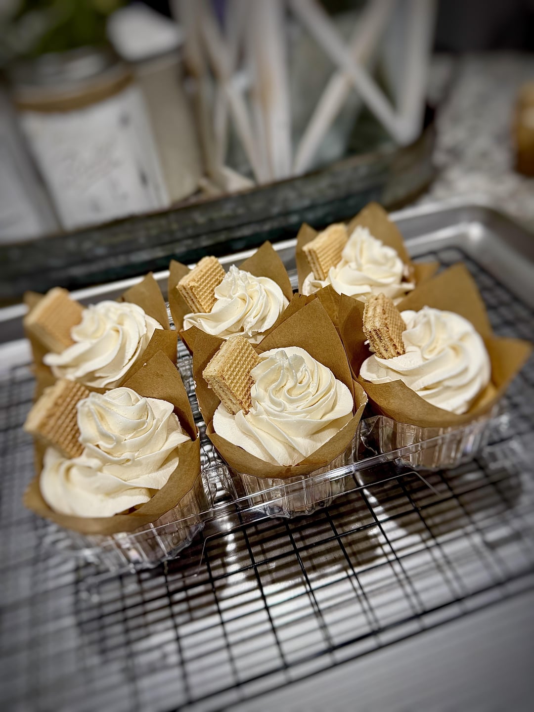 I just started a small scratch cottage bakery and this was my first order! Customer wanted a half dozen vanilla on vanilla. Simple and clean. Vanilla wafer for a little edible garnish! Nothing crazy, but sometimes
