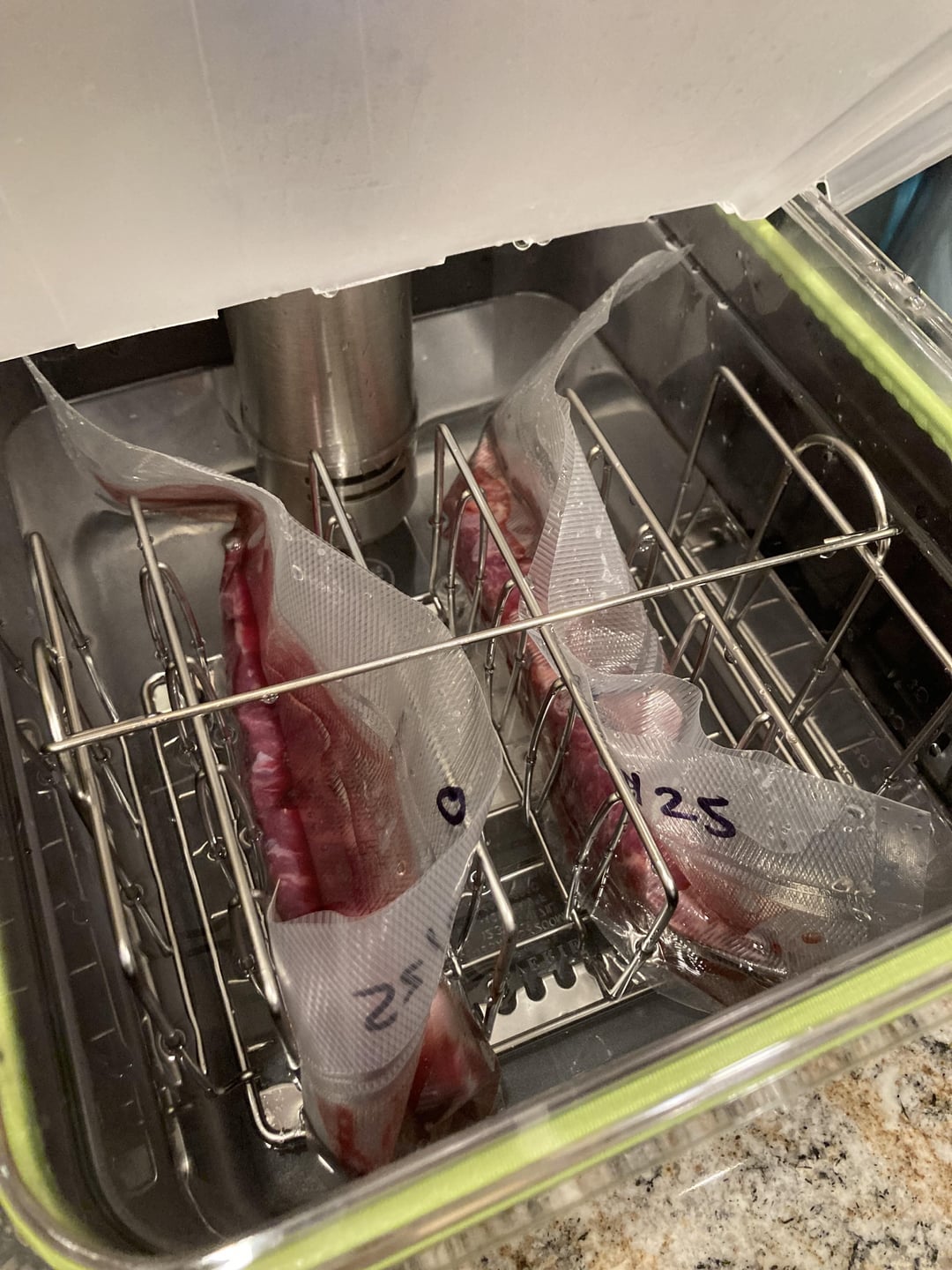 It was my first time cooking in the sous vide and my god was it amazing. Sure, I probably have heart disease now with all the fat in that cut, but it was worth it!