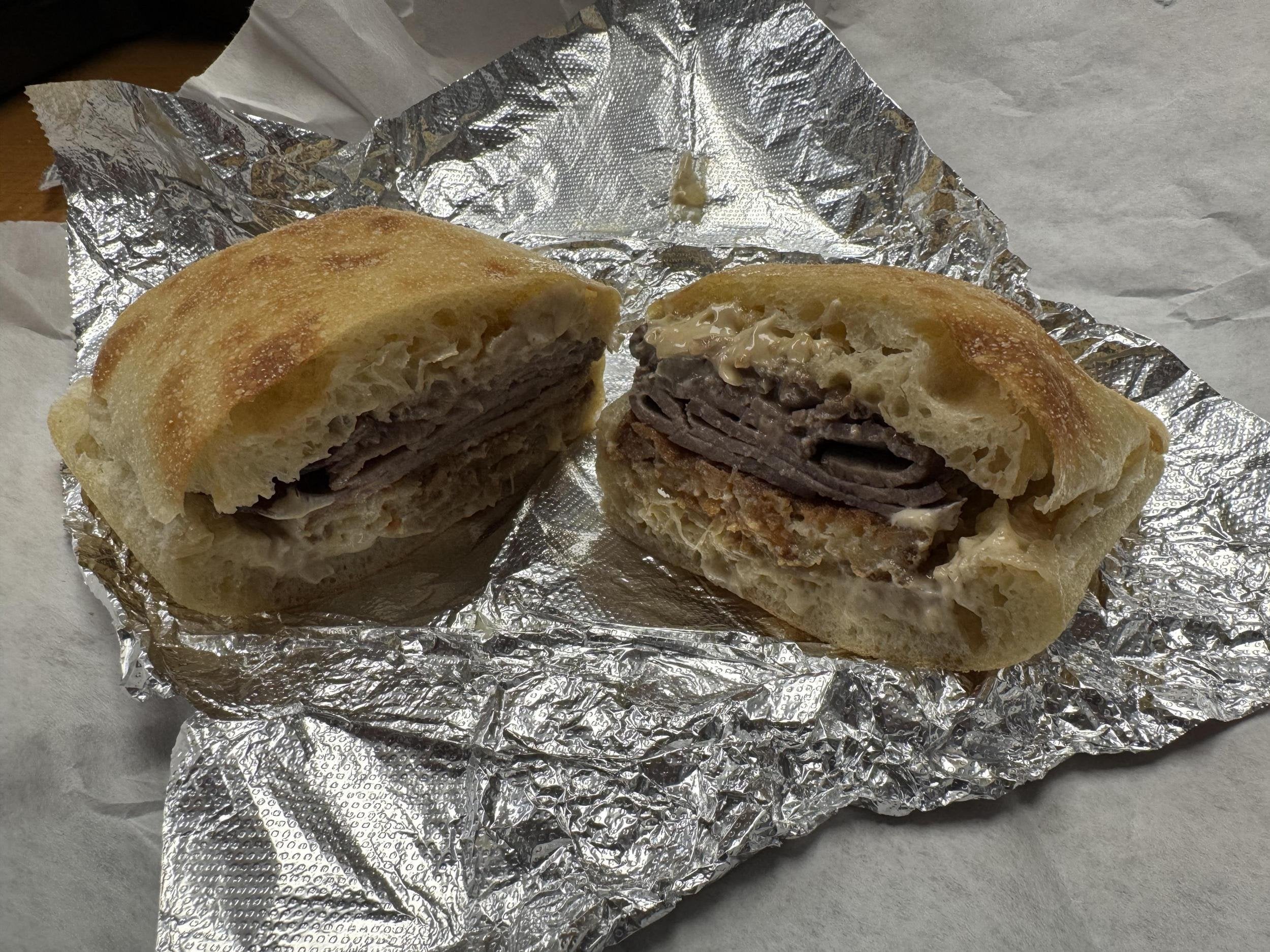 Our roasted beef topped with melted cheese curds & our rich brown gravy, served on Pasta’s stretch loaf with hash brown potatoes, caramelized onions and our French onion mayo.
