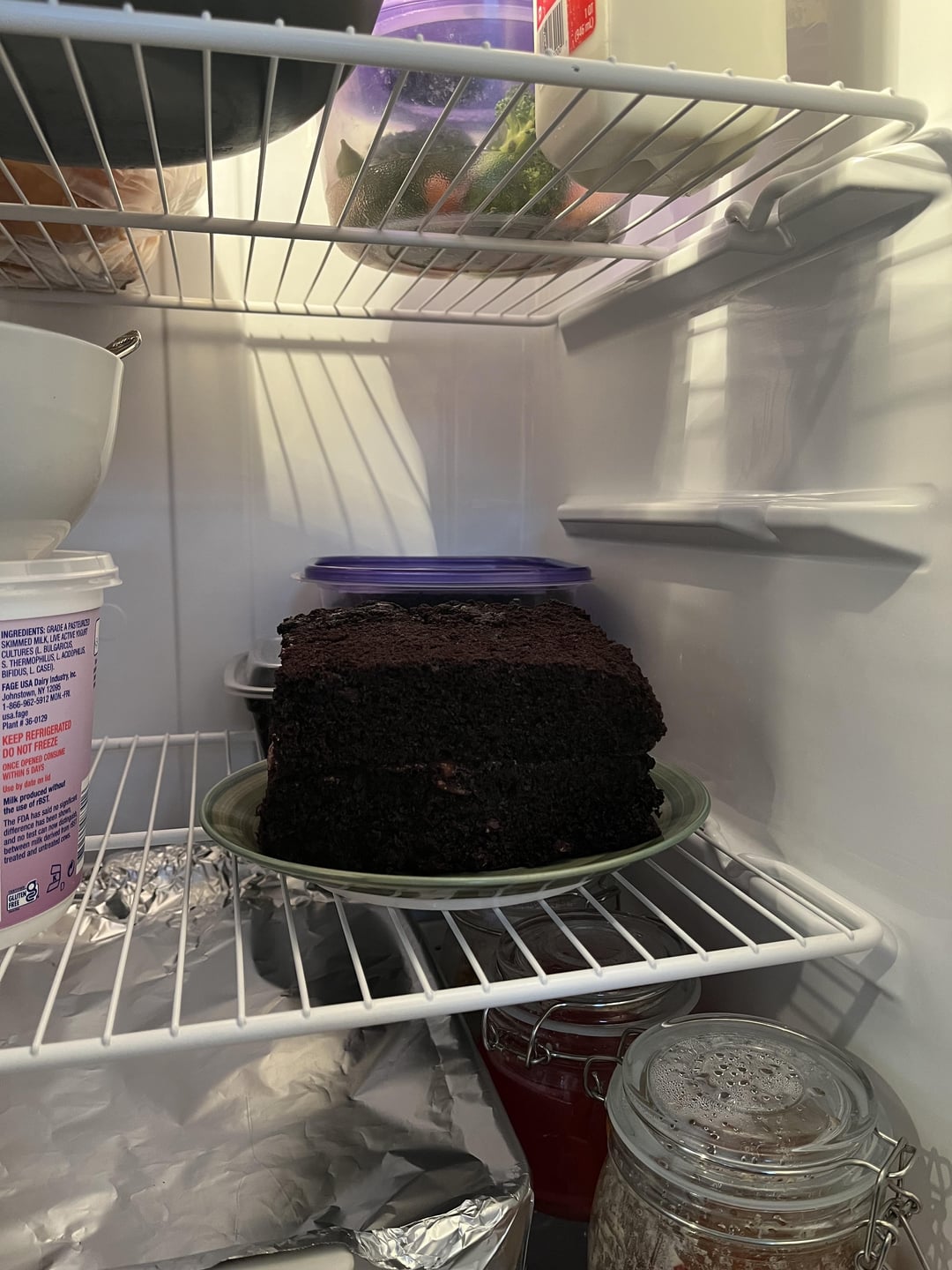my attempt at a chocolate cake with a strawberry layer and strawberry cream cheese frosting on top. think i used too much water for my strawberry reduction in making the frosting. here’s hoping it thickens in the fridge overnight and i can continue? maybe i should go with it and make drips all along the sides.