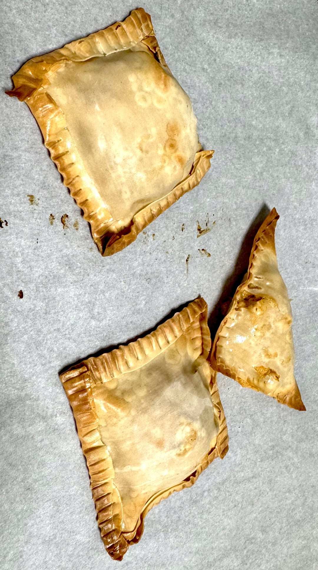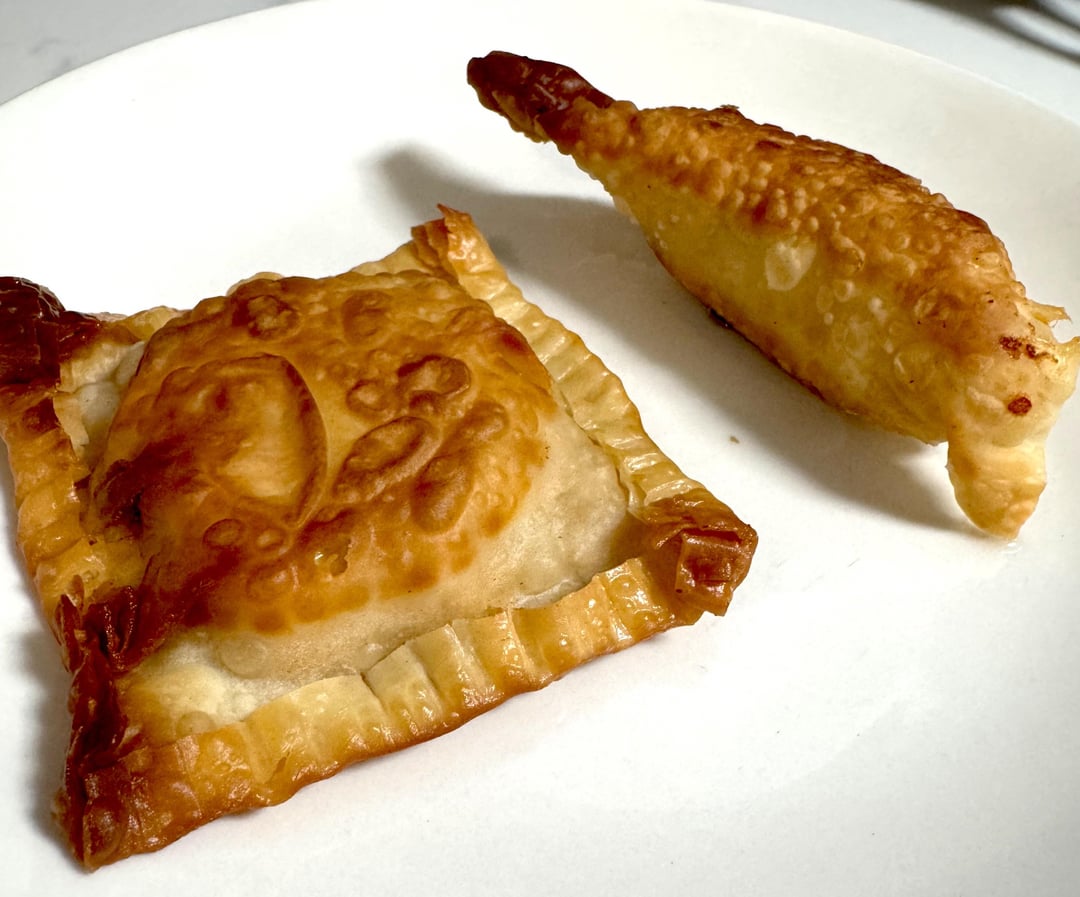 The triangle and ravioli shaped ones have the meat and cheese mixed together, along with cream cheese.