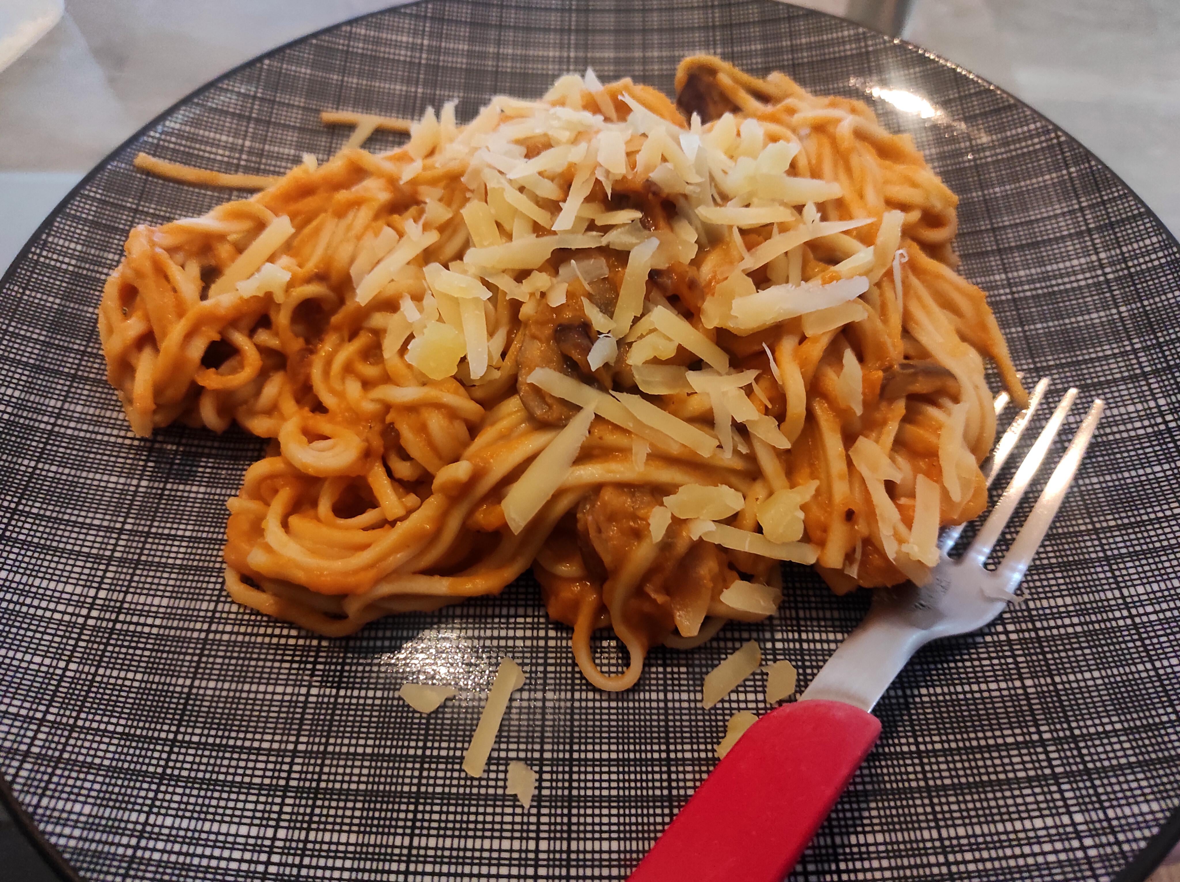 so, i asked for ideas the other day, and while i didn't end up going with any of them fully, i never thought of using butternut squash for a sauce. it turned out surprisingly creamy and amazing! i blended it with a bit of cream and a four cheese seasoning, then added some sautéed mushrooms and onions, and voila! honestly, it was the best thing i've had in a long time, especially since i got a little tired of my carbonara, haha. and most importantly, she loved it too 🥹 stomach and heart full!
