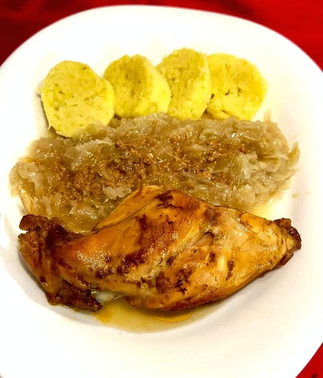 Roasted rabbit with onion and garlic, sauerkraut and potato dumplings. Dessert: coconut slices with yogurt and banana. by Mala-Pavlina 3 Comments Harwy-cz 12 months ago Úžasný oběd 💥😋 Hippodrome-1261 12 months ago Bravo it looks very flavorful. The rabbit looks like it was seared and braised. Yes? Also how did you prepare the sauerkraut? Did you add apples? No_Software3435 12 months ago Looks yummy.Write A CommentYou must be logged in to post a comment.
