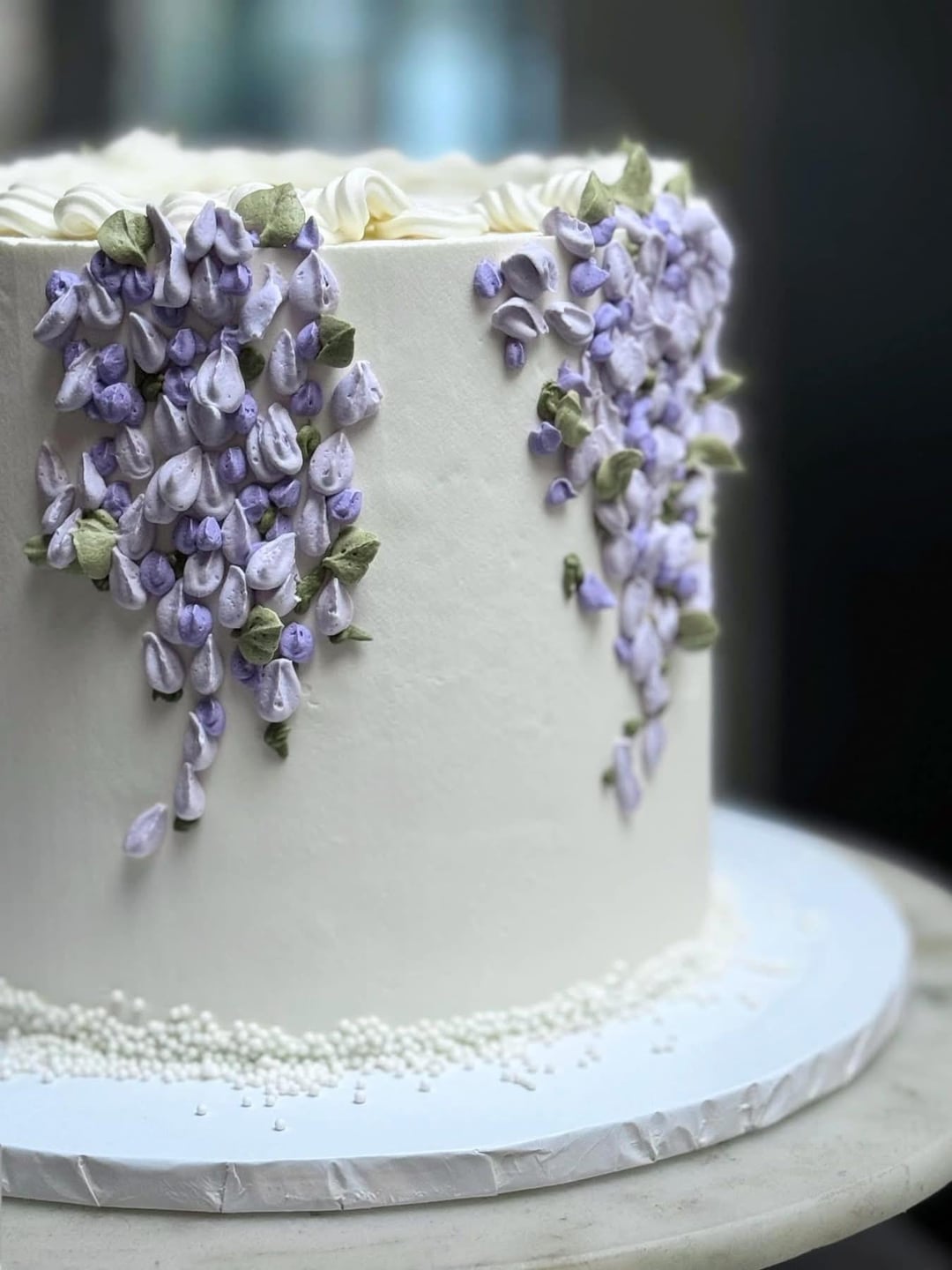 The wisteria piping is the star of the show, but I want to recognize the delicate sprinkles as well. I don’t think I’ve ever seen white sprinkles on white like this.