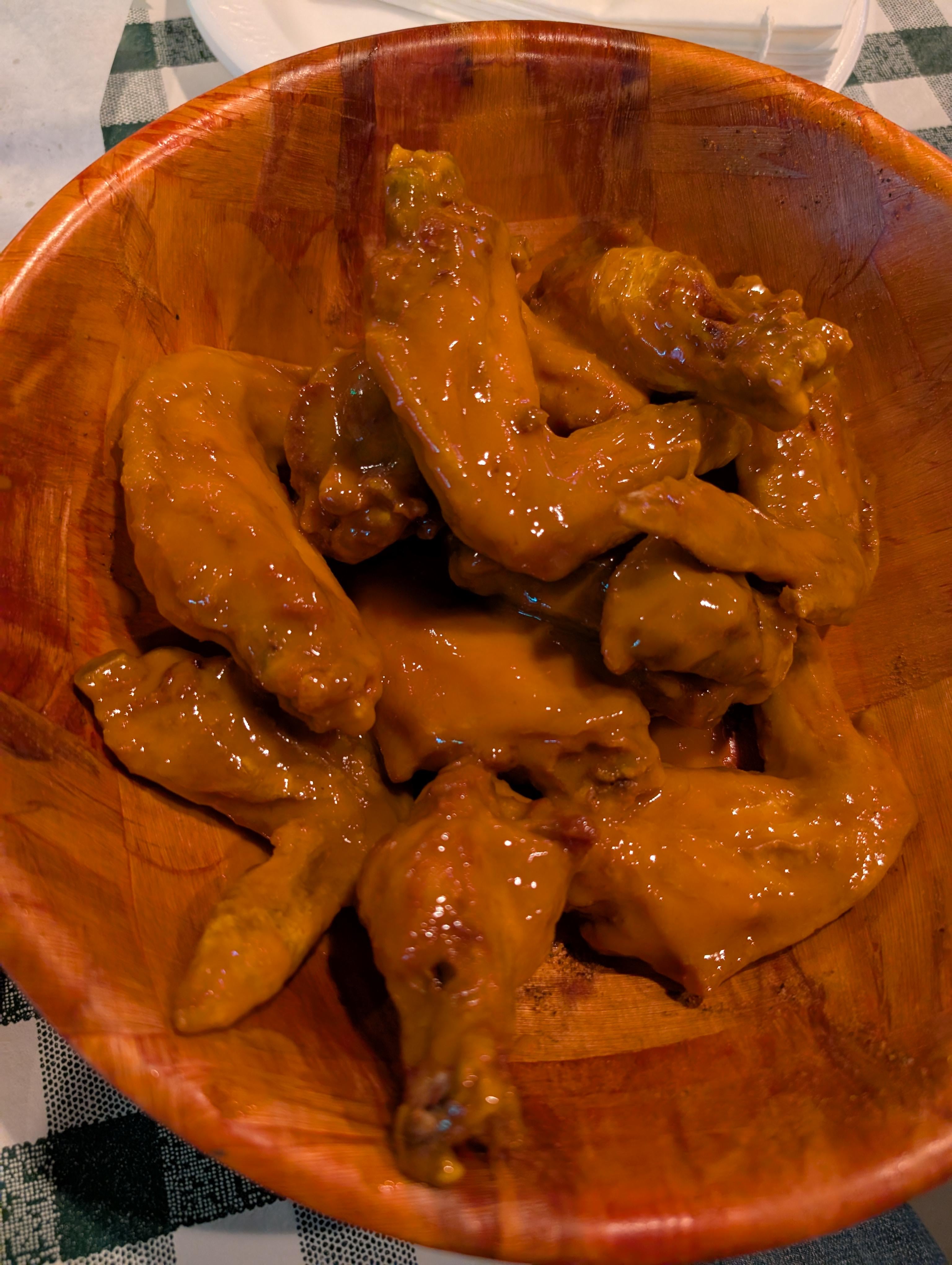 I fucking loved the buffalo cheese pizza but the wings were a pretty big disappointment. Mediocre buffalo sauce, hardly crispy, and too big for their own good. Not bad, definitely not great.