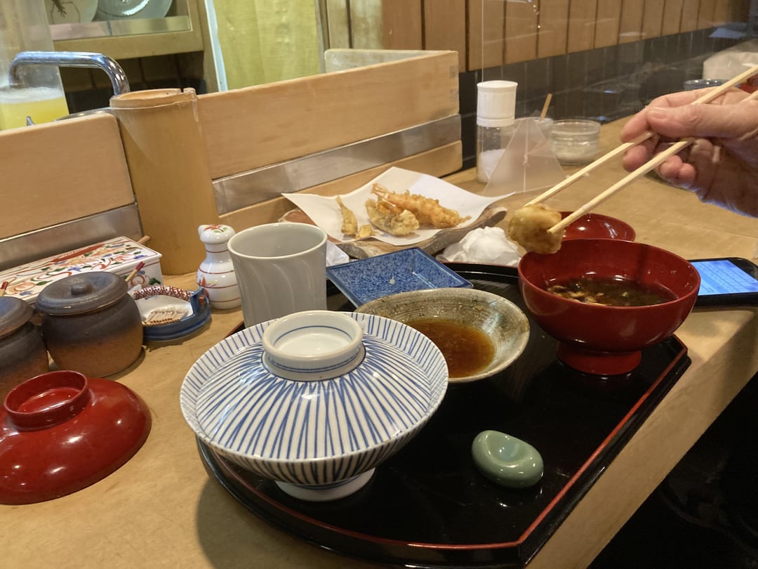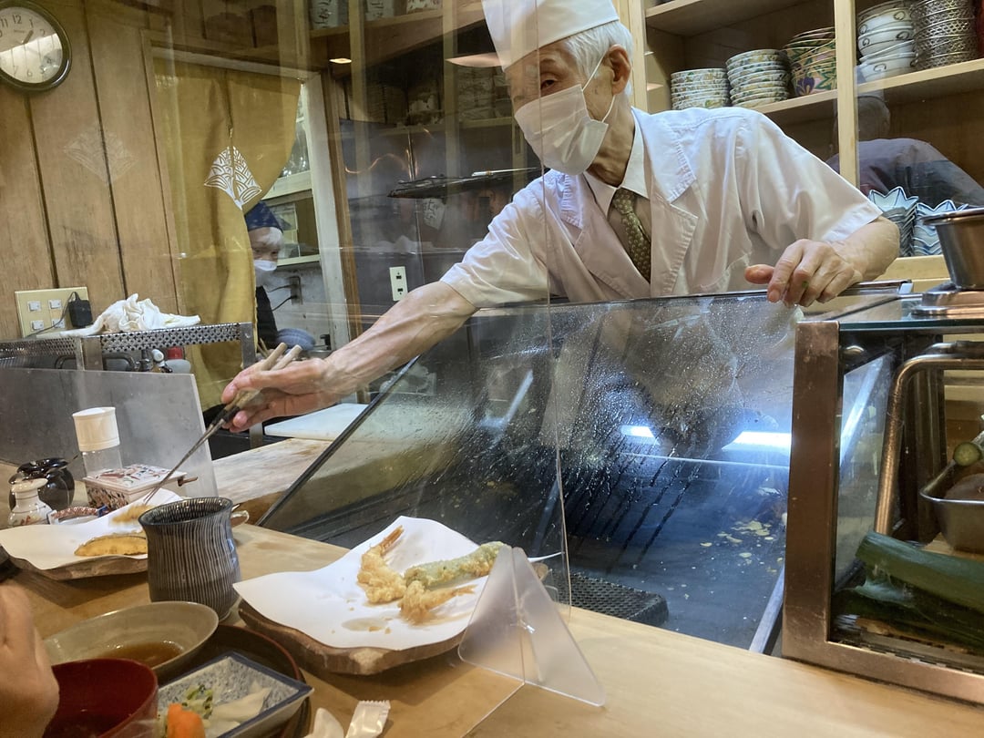 Such a lovely man ! This was in 2022. I hope he is still well. The table service includes soup and several repeat servings of exquisite seafood and veggie tempura. We sat at the counter and Isao Kanemasa served us directly each time he made a fresh batch. This was an unexpected find on our way to the nearby Nezu Museum of PreModern Japanese and SE Asian Art- beautiful gardens too. Well worth a visit.