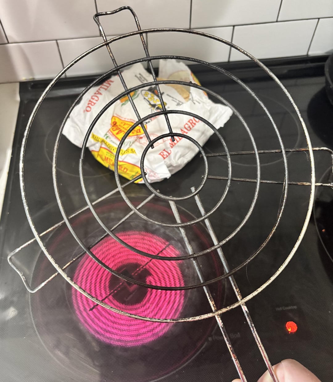 My Colombian friends were using these for re-heating arepas on the stove top. They’re PERFECT for tortillas because they get a toasty flavor, and stay soft inside. Less than $5 at the Colombian store. Do Mexicans use them? I realize it’s a simple contraption but Never seen them in Mexican stores or households. Before anyone mentions NO I didn’t start a fire 😂I realize the tortilla package looks close to a fire hazard
