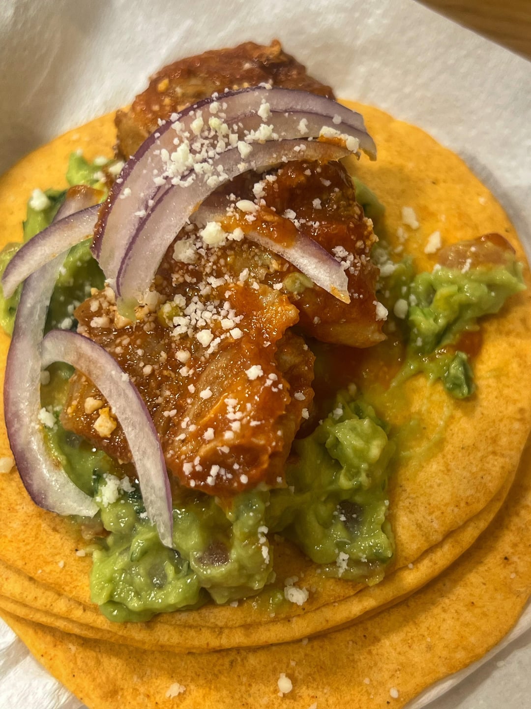 Pork shoulder seared and braised. Then chopped and simmered in tomato sauce with lots of garlic paste. Then served with chipotle tortillas, Guac and red onions.by GiantChef1 Write A CommentYou must be logged in to post a comment.