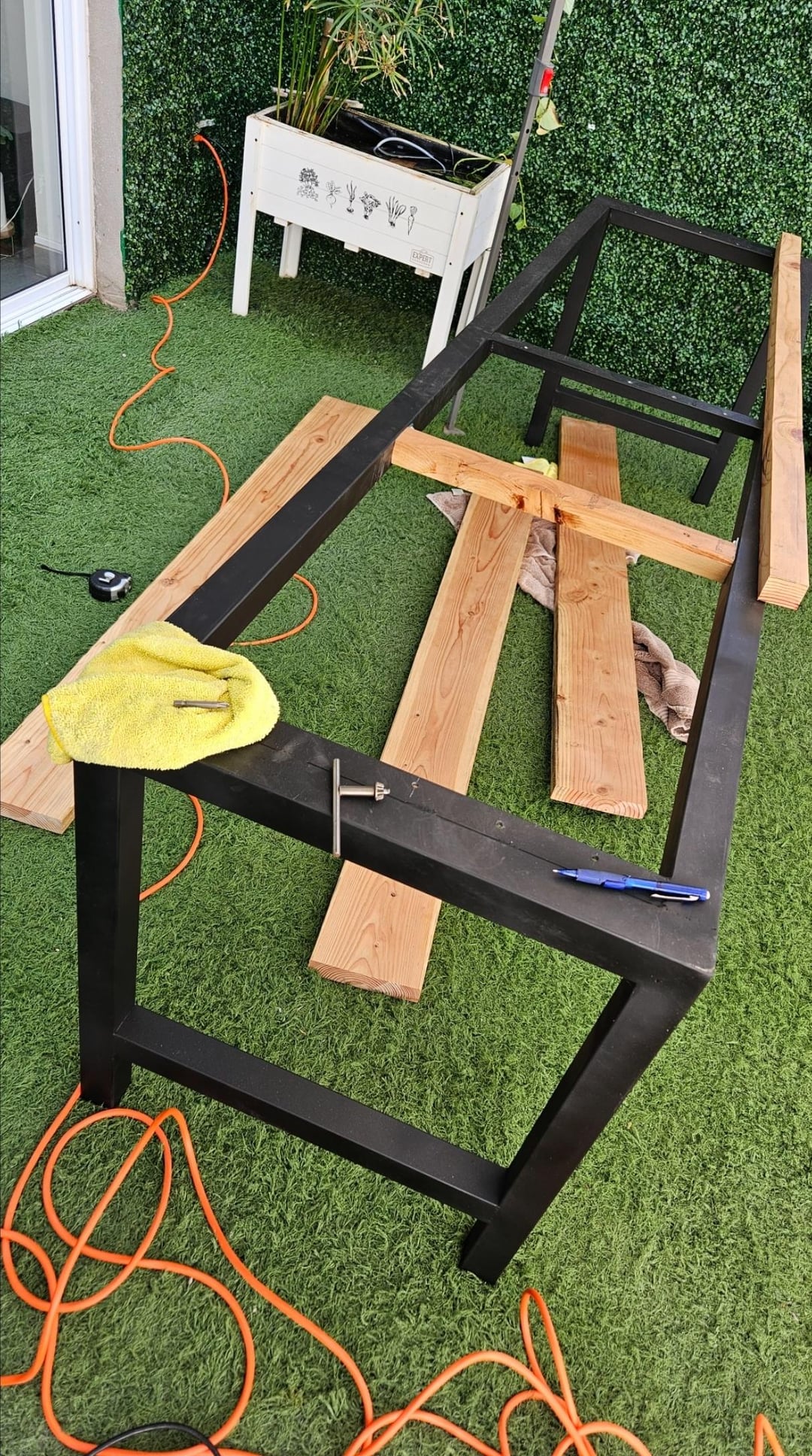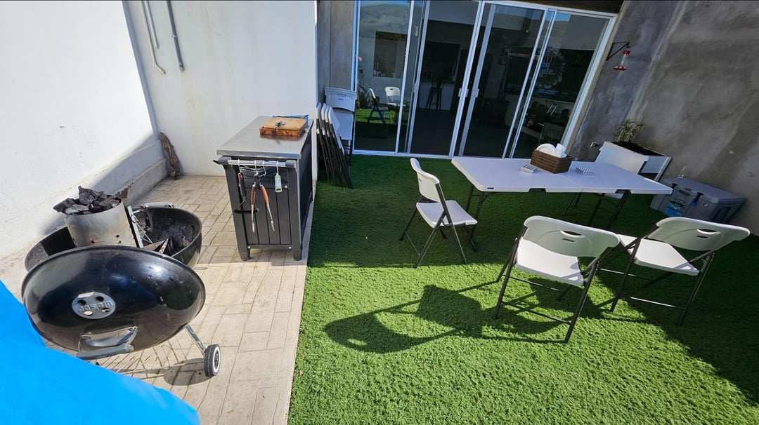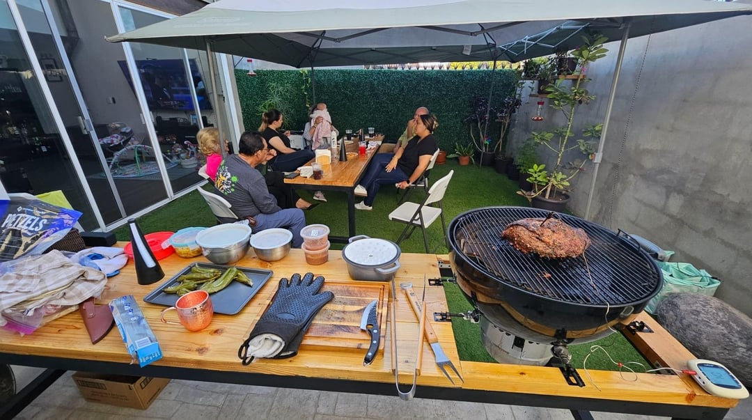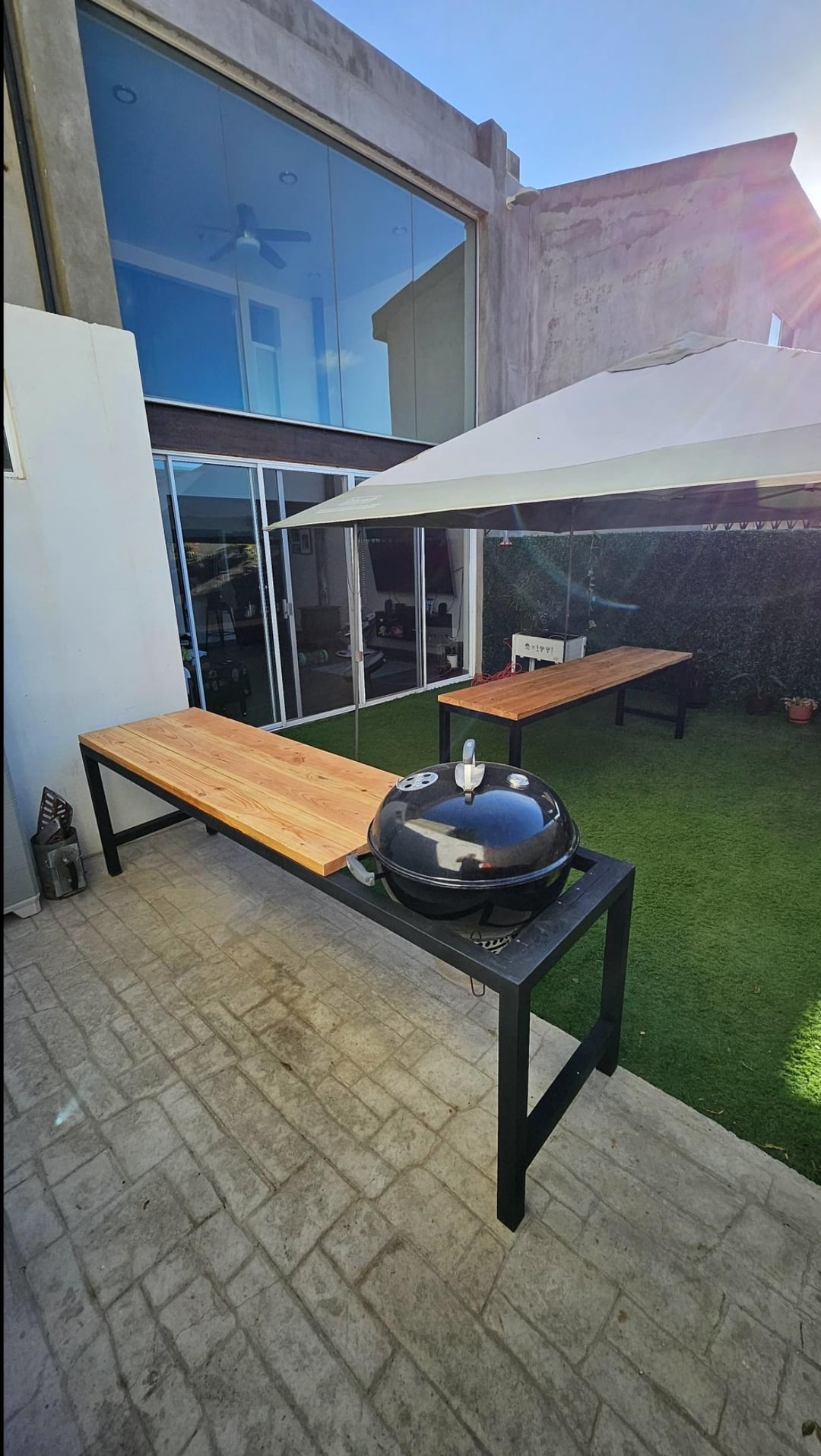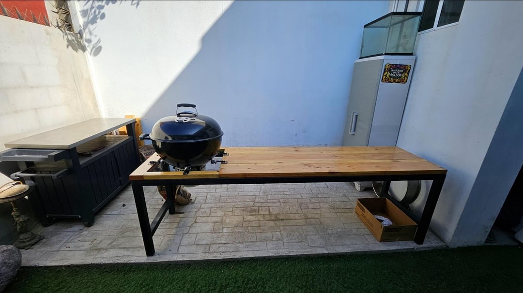 I'll admit, I took a shortcut on the grill table – it's square instead of round! I didn't have the right tools to cut a circle, plus I'm planning to upgrade to a bigger, 26" grill eventually anyway, and I've got the space for it.