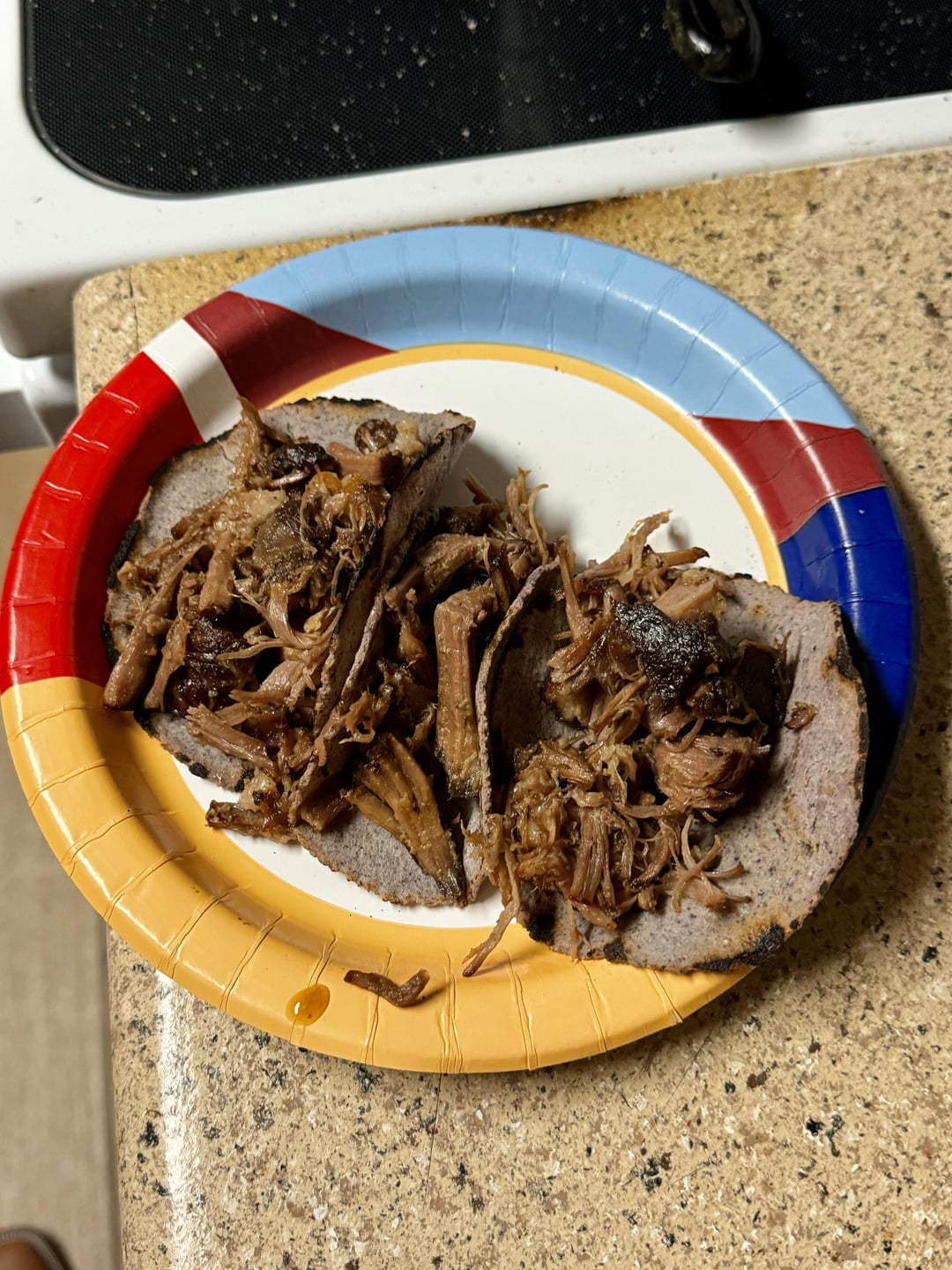 Cut pork roast in big chunks, seared on med-high on all sides.
