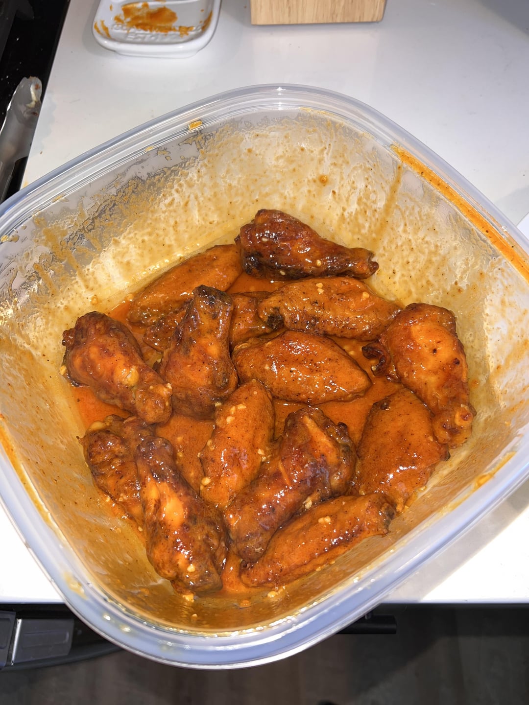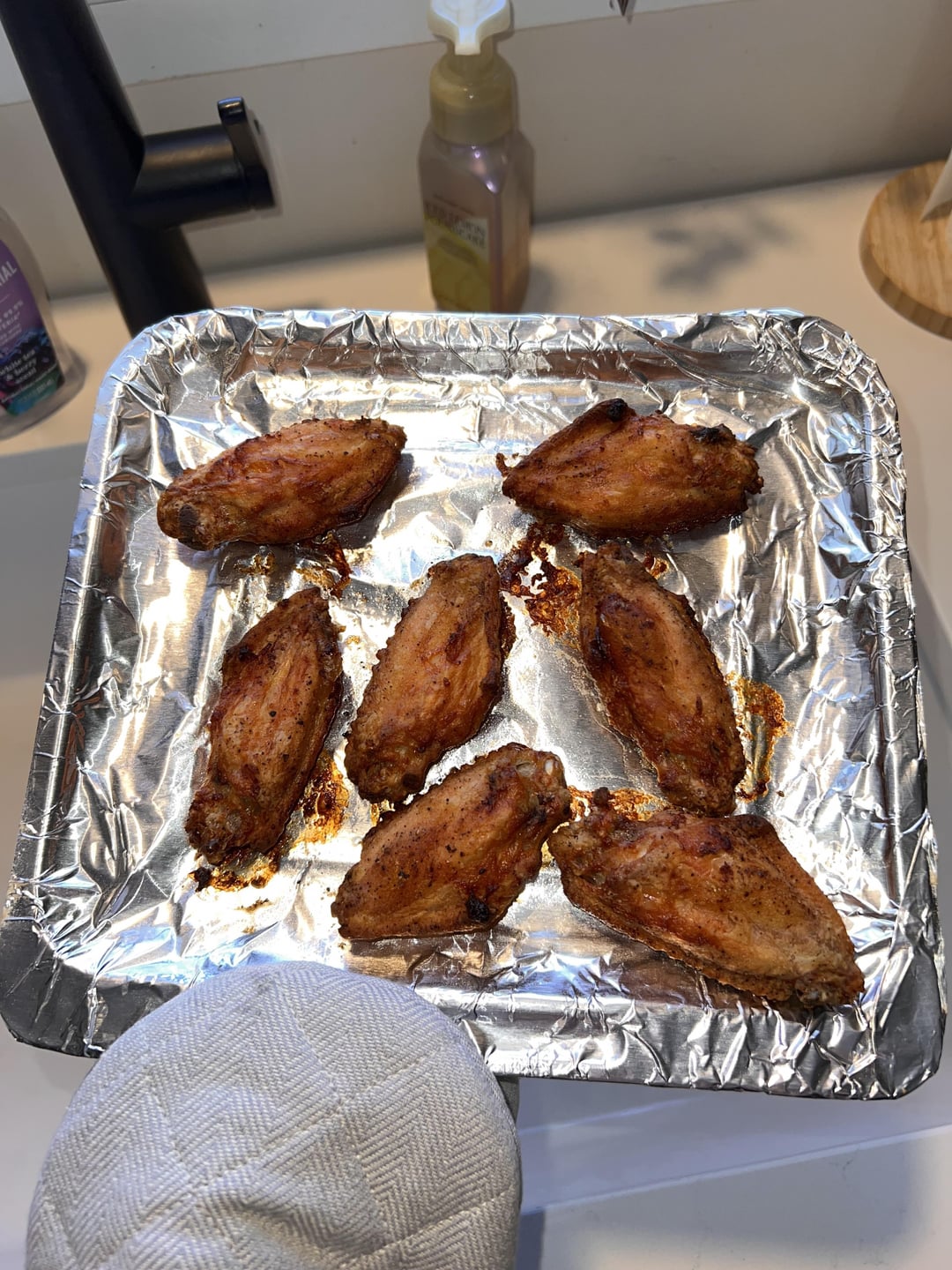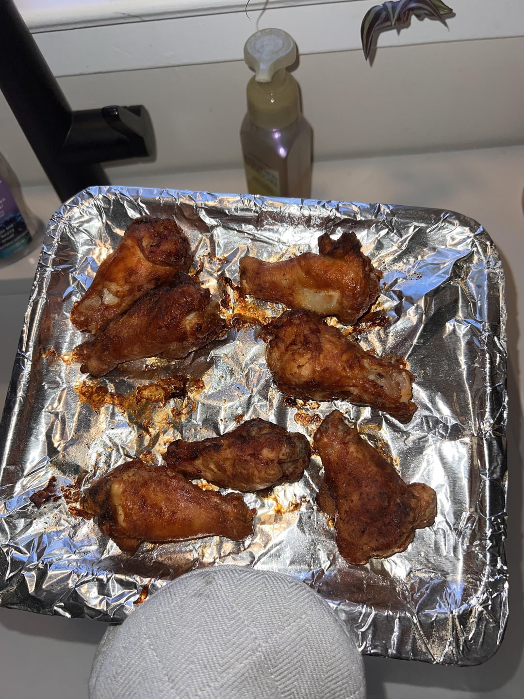 Made sauce to taste. Nothing special but they were delicious. by cuseonly 12 Comments Curvol 8 months ago Those wings are very special, my friend. Nice job! 86TheSnow 8 months ago All flats? You were born for this 🐤🐓🐔 lostit311 8 months ago They look damn tasty Hotwingz4life720 8 months ago Next time use parchment paper instead of foil.Apply same method next time you make nachos.Thank me later. Mywaterhurts 8 months ago Fantastic! sasparaco 8 months ago Holy smokes. Those look incredible. Well done! Sad_Head_2229 8 months ago Good job! They look delicious DannyVIP 8 months ago 🥵 came out amazing! DIJames6 8 months ago Damn good looking first attempt.. Electrical-Let-6121 8 months ago It’s a quest Hot-Might-9666 8 months ago I’d love to try it too 🙂 Matter_Baby90 8 months ago Yum!Write A CommentYou must be logged in to post a comment.