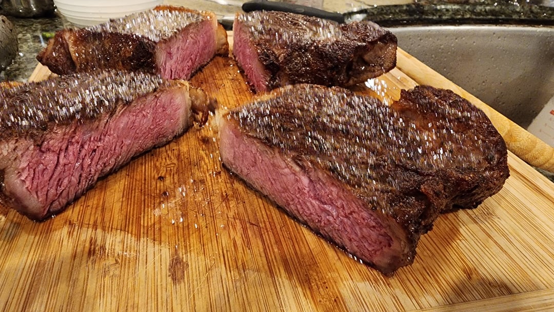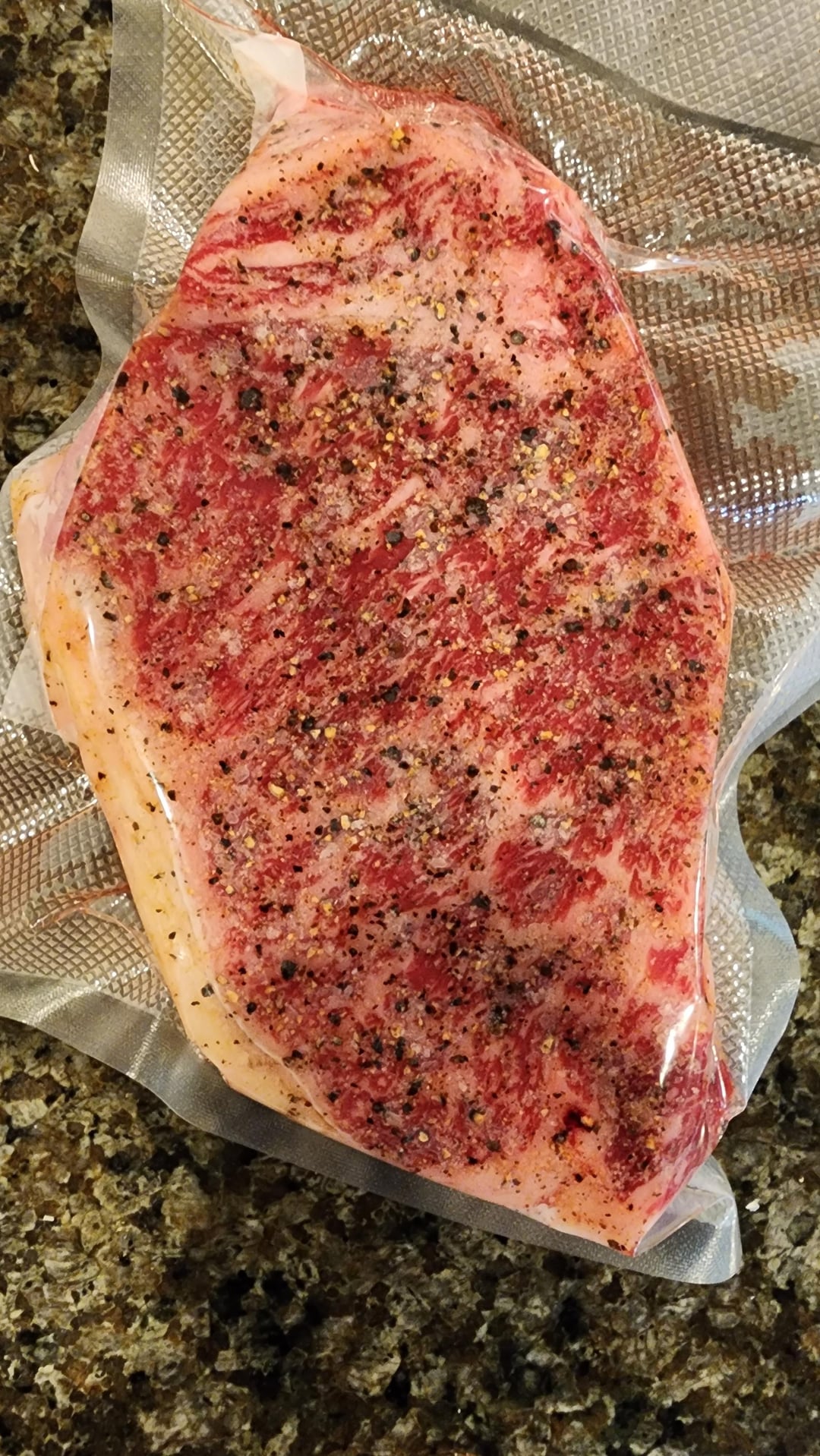 Wagyu reserve NY strip, 137F for 2.5 hours and an avocado oil sear.