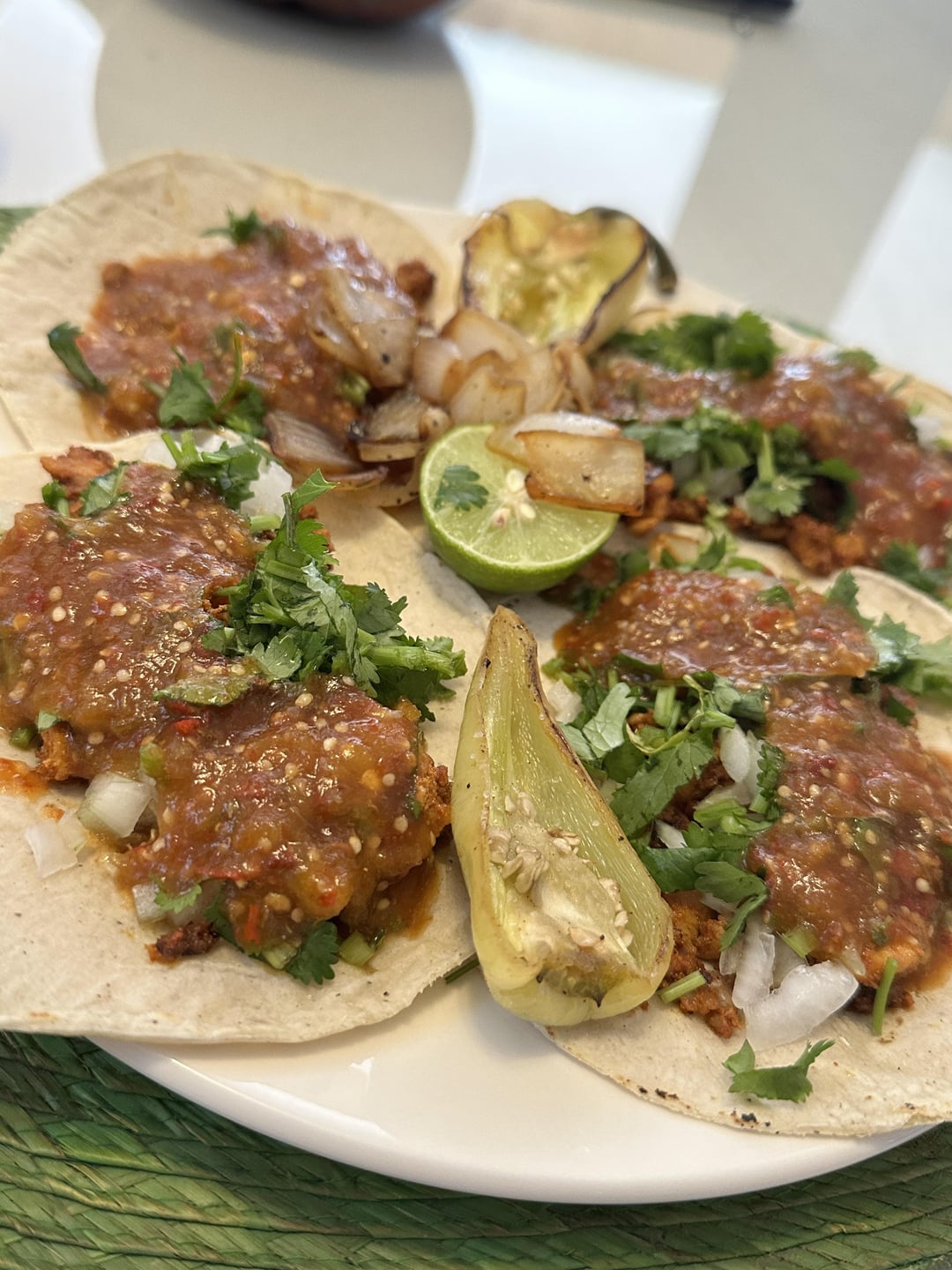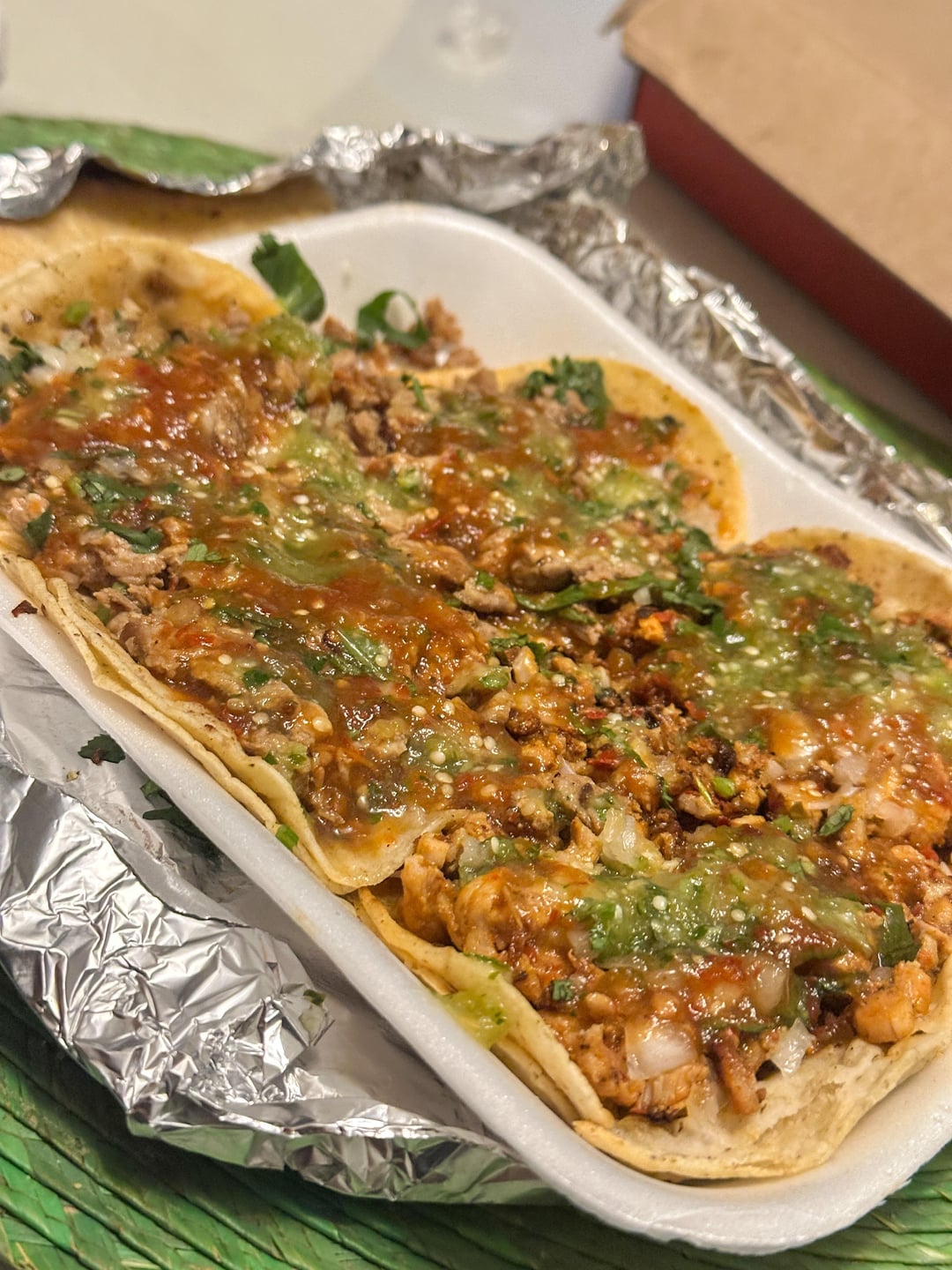 First two pics were three asada and two adobada, all sauced up, following with the shot of just the tacos.