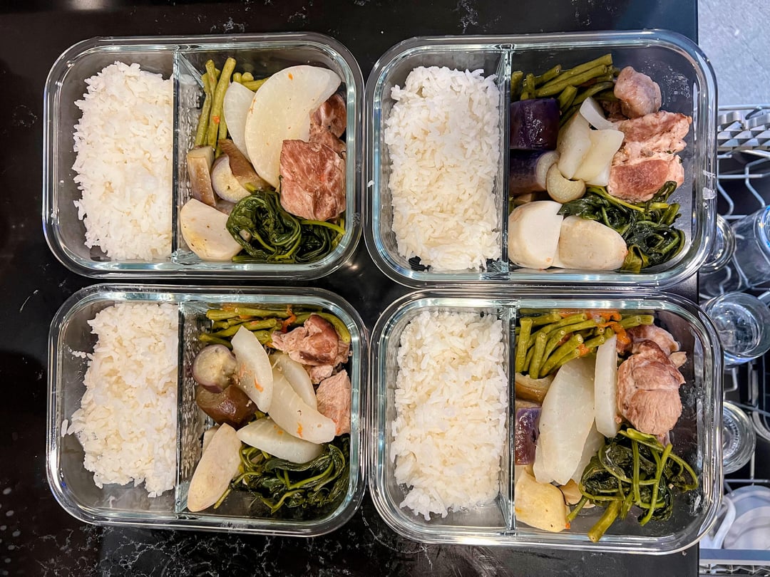 Note that normally this dish is swimming in broth but I haven’t added it yet in the picture above because I wanted to simmer the bones a bit longer. Plus, these containers do not keep liquids separate between compartments so the broth would have leaked to my rice.