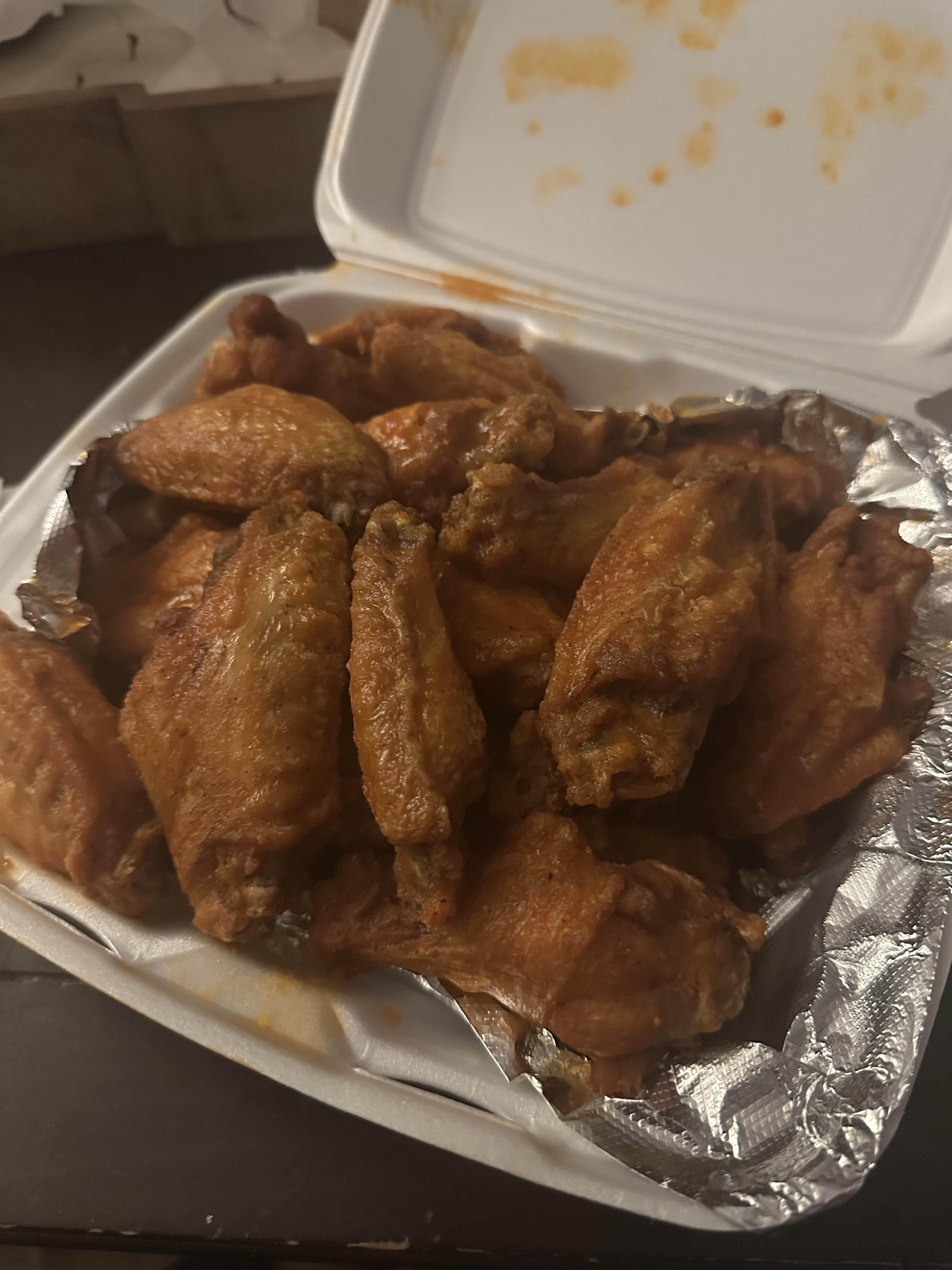 The best wings I’ve had since the last time I had wings. From O’Reilly’s Pub here in Cleveland. They were still pretty crispy even with the styrofoam container.