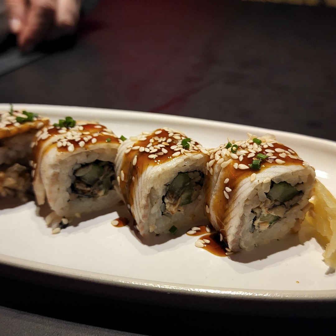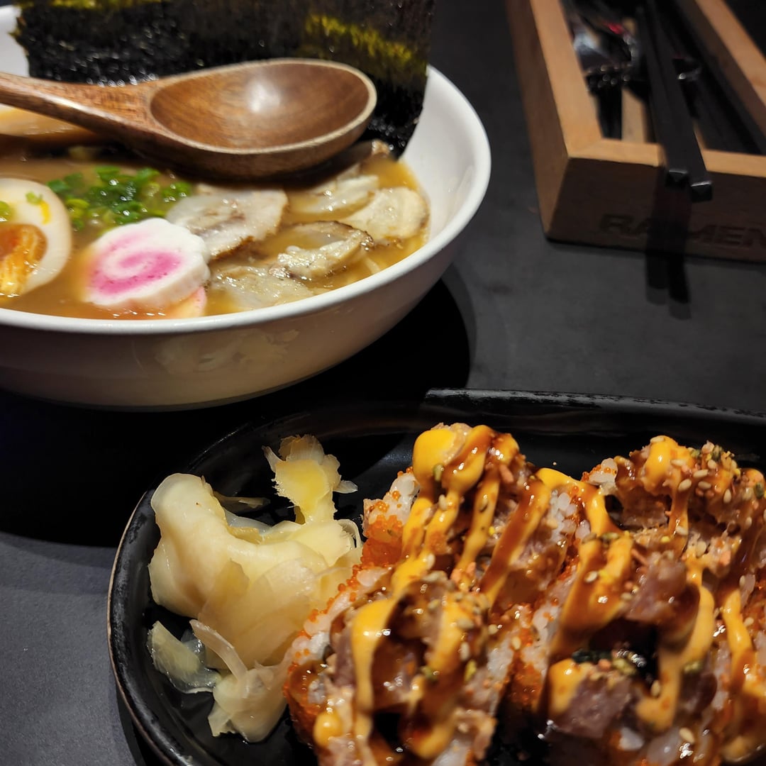 I had this ramen (chicken stock, chicken noodles mostly), one Nutella tayaki thing (it had banana filling inside), 3 of these truffle and eel sushi and a mango souffle covered in chocolate. There's no grams and I got all this ordered by my friends as a surprise so I don't know the names of anything else except the ramen. I was surprised by this so I already had my maintenance calories and I'm wondering how this will effect my progress🥲
