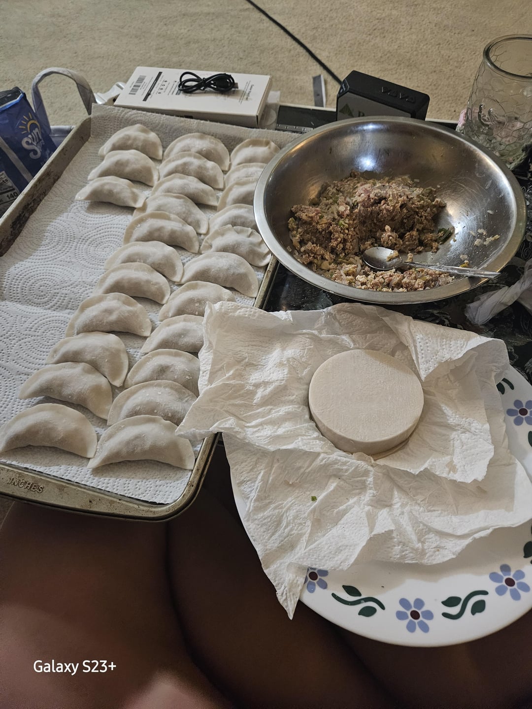 Looking good! If you want a little thinner wrapper, try rolling out the store bought wrappers a little next time. Super thin mandu pi is great!