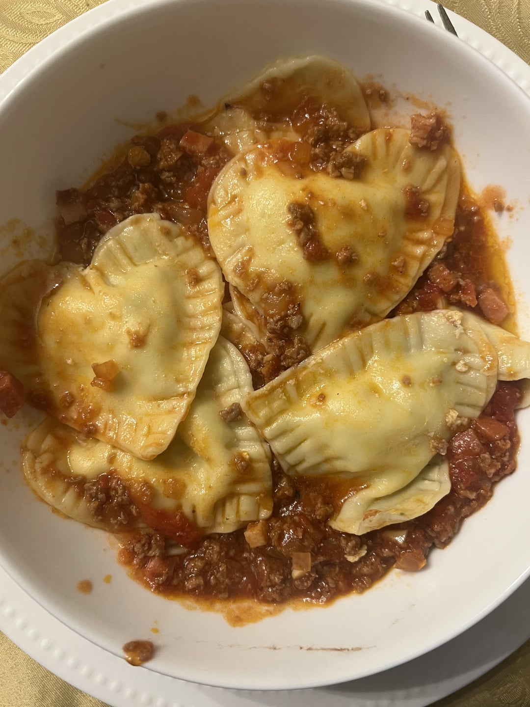 Made some four cheese with meat sauce.by DJ_AC 3 Comments DJ_AC 9 months ago Here’s the recipe: Pasta: 3 cups flour, 4 eggs, olive oil.Filling: ricotta, Parmesan, Romano, mozzarella, salt pepper Just like 1/2 cup ricotta, 1/2 cup Parmesan, and a bit of the other two. Add salt, pepper. I chilled the pasta after cutting it and chilled the filling in the freezer for a bit. underenjoying 9 months ago Reminded me of this song with the lyrics [Sunshine and Ravioli (at 0:28)](https://youtube.com/watch?v=vnz_gbDJnhI&si=FWRXKVNHXI-aQwC-) Legitimate-East7839 9 months ago How cute!?Write A CommentYou must be logged in to post a comment.