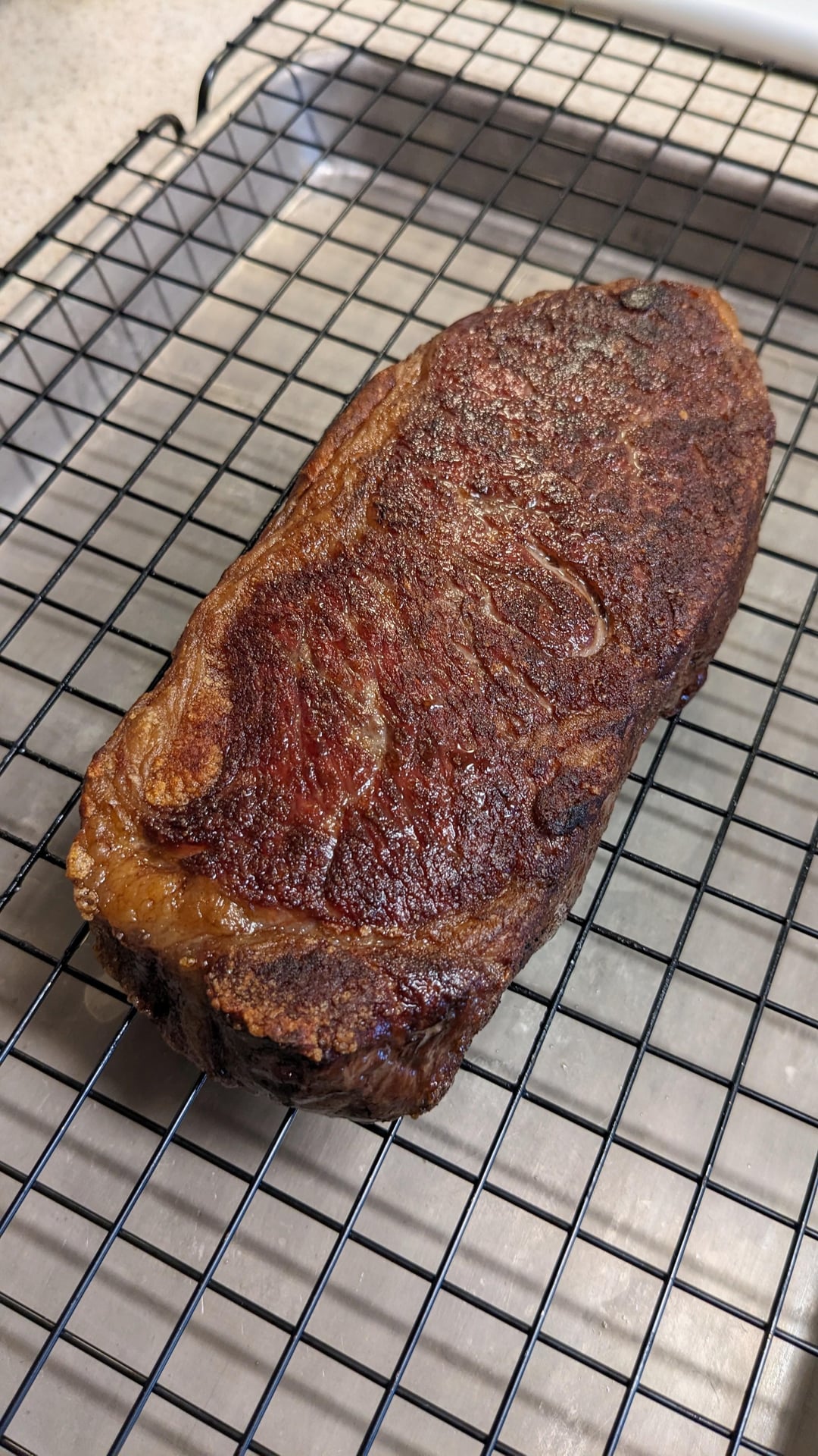 Been seeing a lot of you with steak and eggs posts so I figured I'd get on the bandwagon and post my version. Dry Aged prime strip reverse seared served with artisan smoked salmon eggs royale. Roasted Potatoes and fruit to cover my good groups. I'll admit…steak dipped in egg yolk with hollandaise is pretty insane delicious