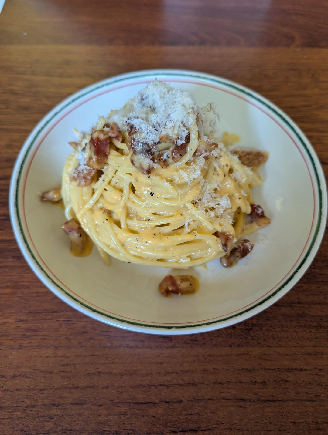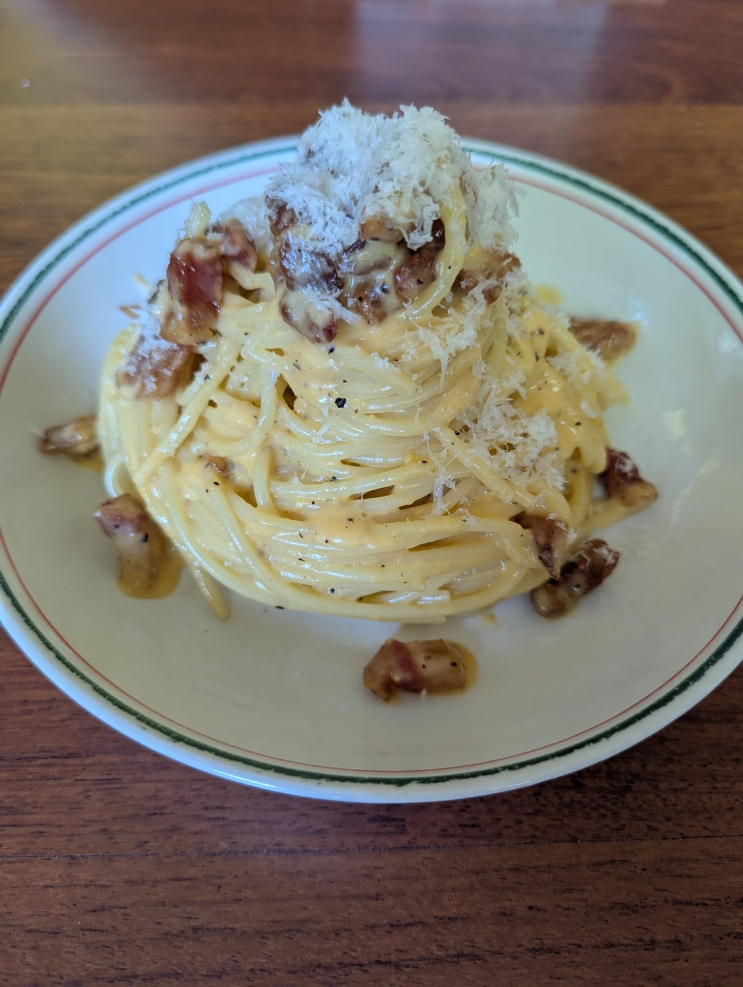 This truly transforms the carbo-cream into something marvelous and is lovely and balanced due to its mix of both pecorino romano and grana padano.