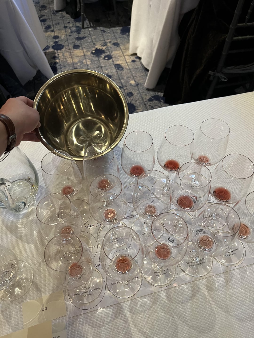 Saturday early afternoon we did a 15 bottle tasting and lecture from each producer that flew in from Italy for the event. All but one were 2020 vintage my personal favorites were the Elio Altare and the G.B Burlotto which had fantastic acid very light finish smooth and approachable for how young it is. The Palo Scavino had heavy oak flavor which was not ideal for me but I imagine it may lay down well. I did not use the dump bucket very much for obvious reasons and I feel like I was hit by a truck but it was well worth it. One of the best Barolo events outside of Barolo itself in my opinion.
