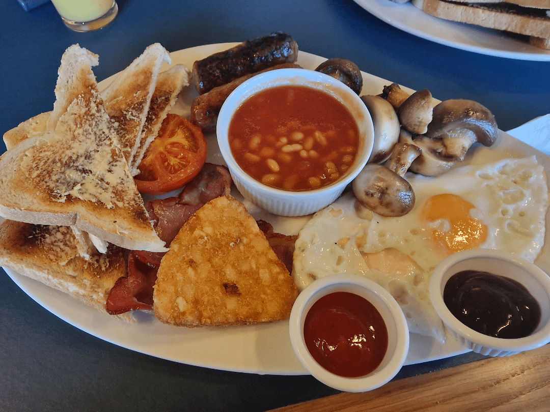 2 bacon, 2 sausage, 2 egg (apparently 1 well done and 1 perfect), hash brown, mushrooms, tomato and beans. Plus 2 slices of toast and more if you ask. by Gold-Psychology-5312 Write A CommentYou must be logged in to post a comment.