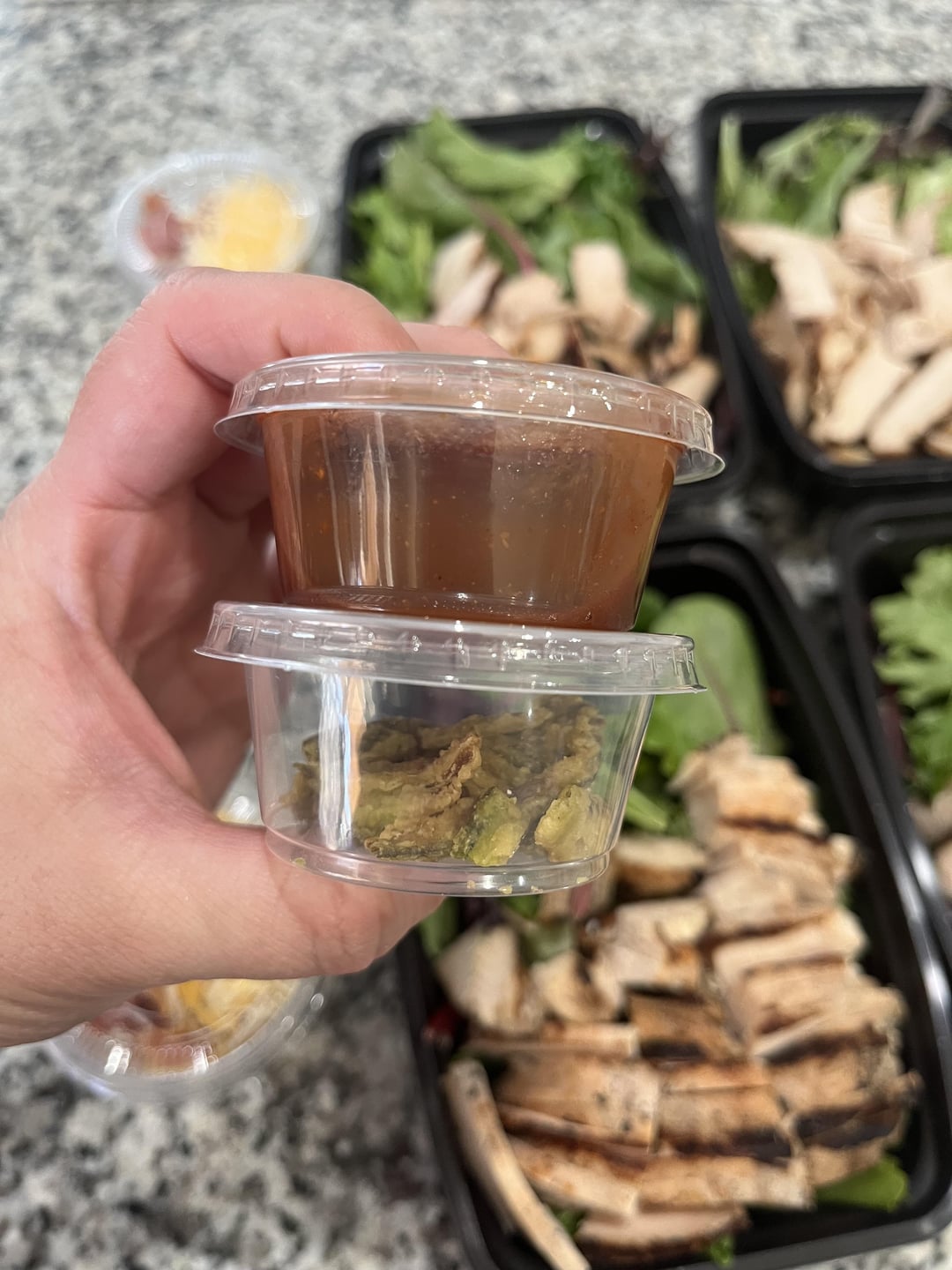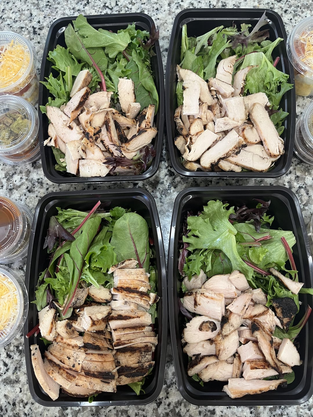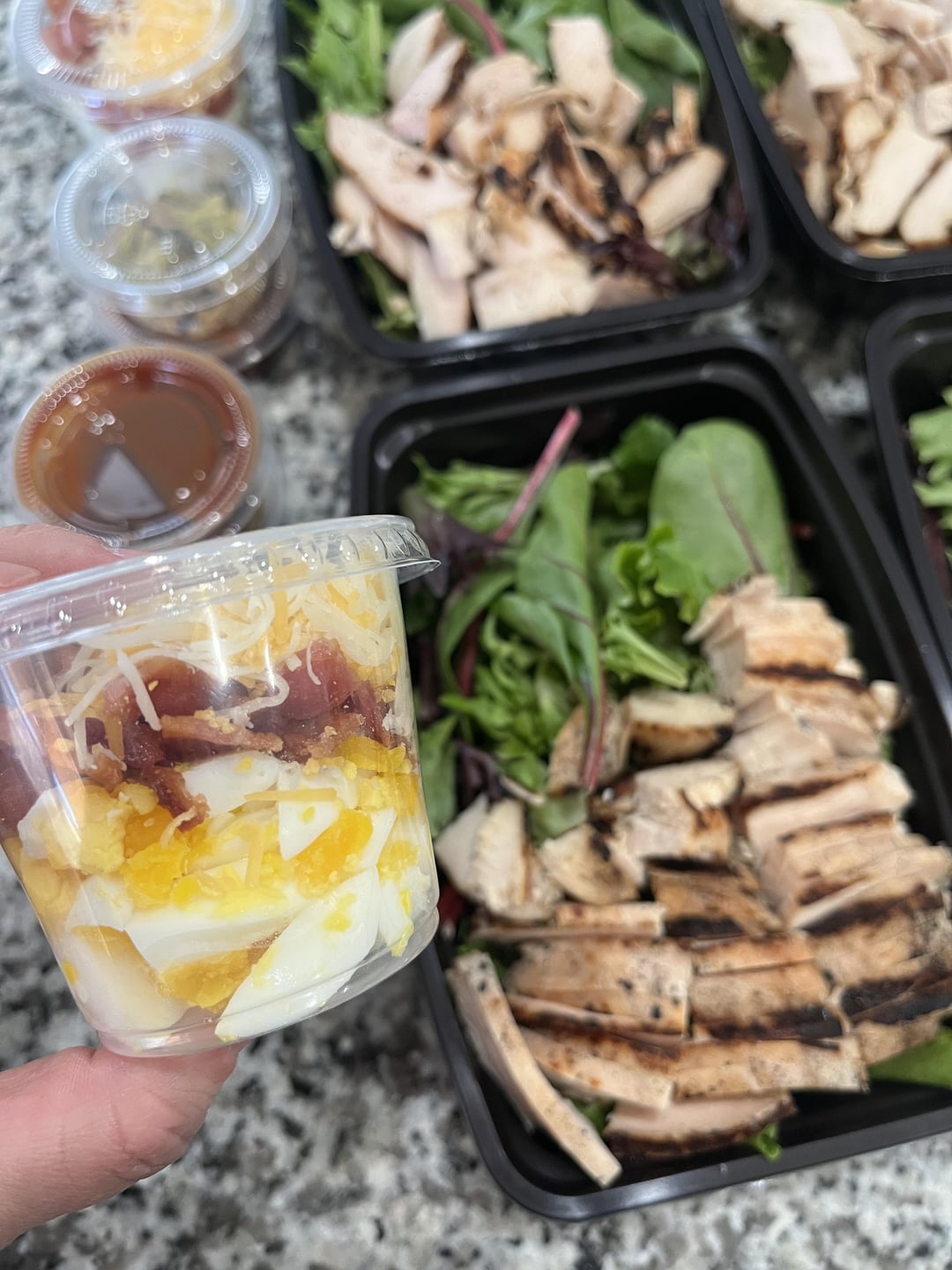 Obsessed with the Chick Fil A grilled cobb salads! Made a few adjustments to increase protein but pretty much the same, just skipped the tomatoes. I’m having it with a spicy bbq sauce dressing. Super simple!