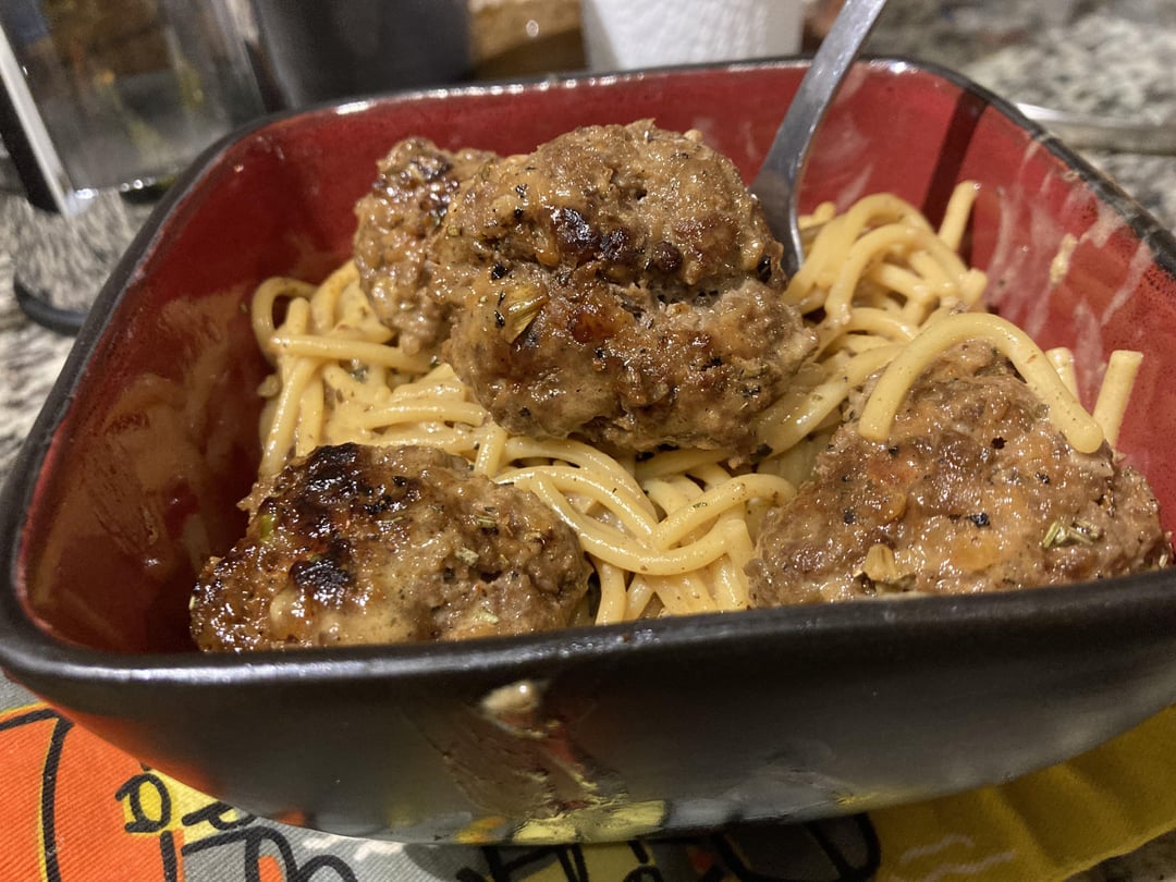 Despite the shitty lemon I added extra garlic and cooked the meatballs and sauce in a cast iron pan. Put cast iron in oven during preheat to get it ready for meatballs.