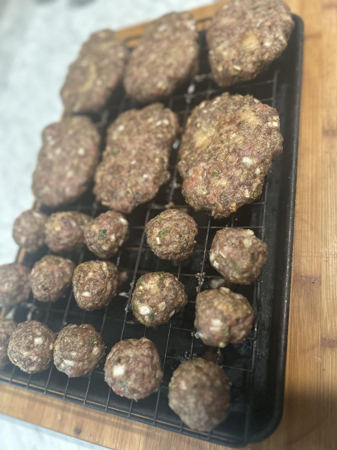 Slide 14: Meatball patties’ I’ve never tried this before, but I took my meatball mixture and made patties with it to fit the hoagie rolls for easier eating. I’m excited to see how it turns out. Each one was 6.5 oz, plus extra for meatballs for lunches.