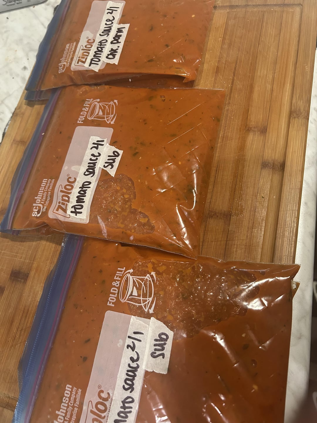 Slide 11/12: packs of tomato sauce for meatball subs and chicken Parmesan.