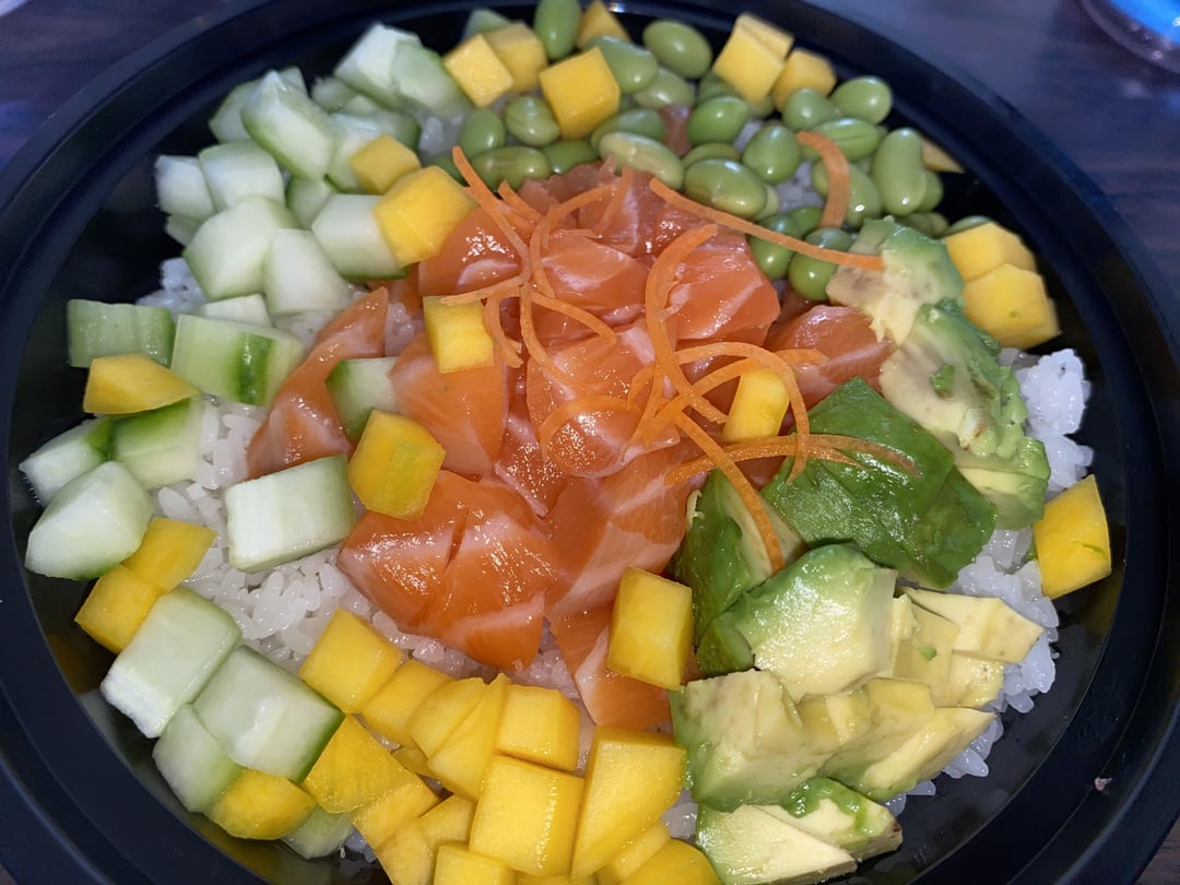 Our usual hot dog spot was closed today, so salmon poke bowl it is✨
