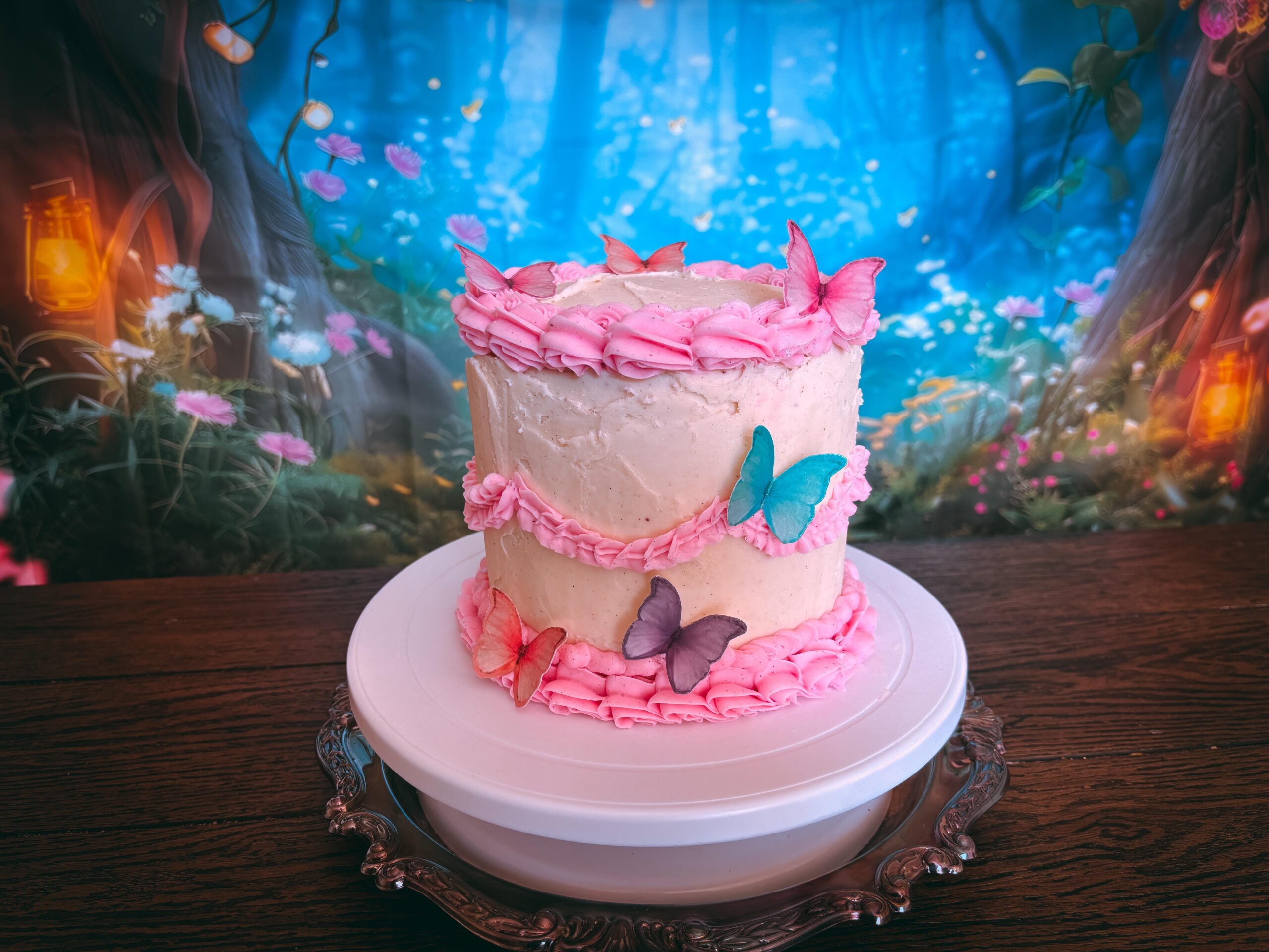 I’ve only decorated a handful of cakes and never with this much piping so I was super excited when it came out decent 🙂 Cake is chocolate with a salted vanilla bean butter cream (buttercream recipe is from Preppy Kitchen but I doubled the salt and used vanilla bean paste)