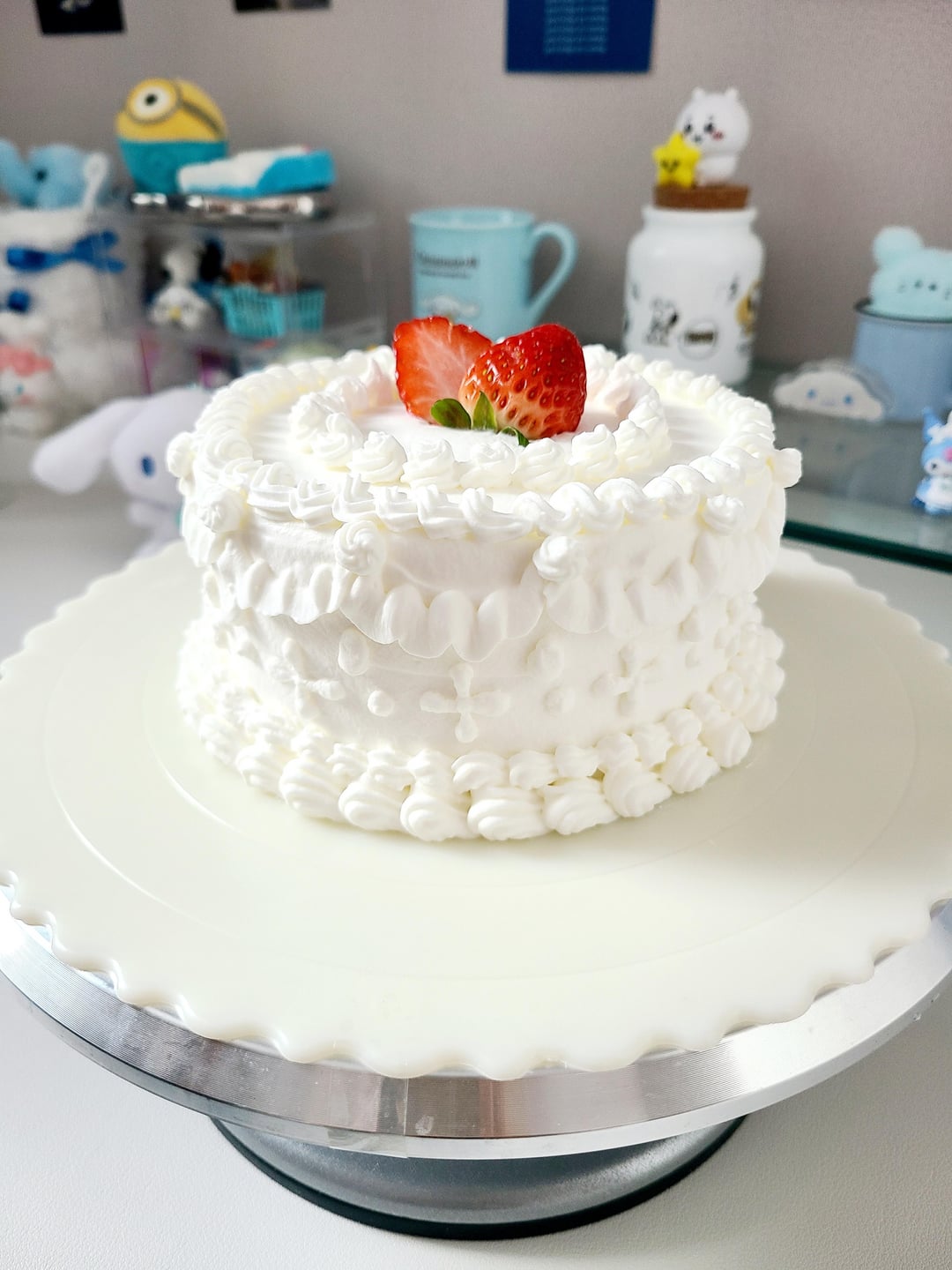 this is so tiny and sweet 😭 i live alone so i don’t usually make many cakes but i might make more small round cakes like this for a few guests 🥺 how many people do you think this serves?