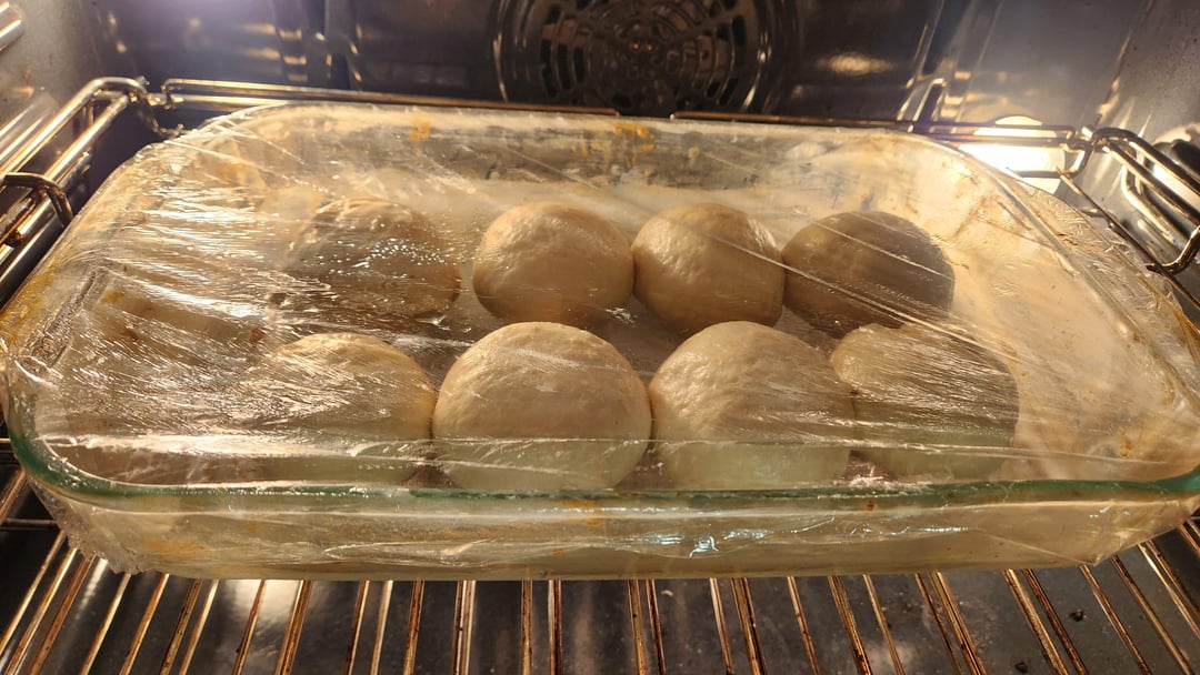 I let the dough rest for 30mins, knead by hand for 10 minutes, and bulk rose for probably over 12hrs. My main problem was being too impatient. Once the dough has risen to be light and fluffy, what looked to me overproofed, it's ready to be divided and shaped into rolls.